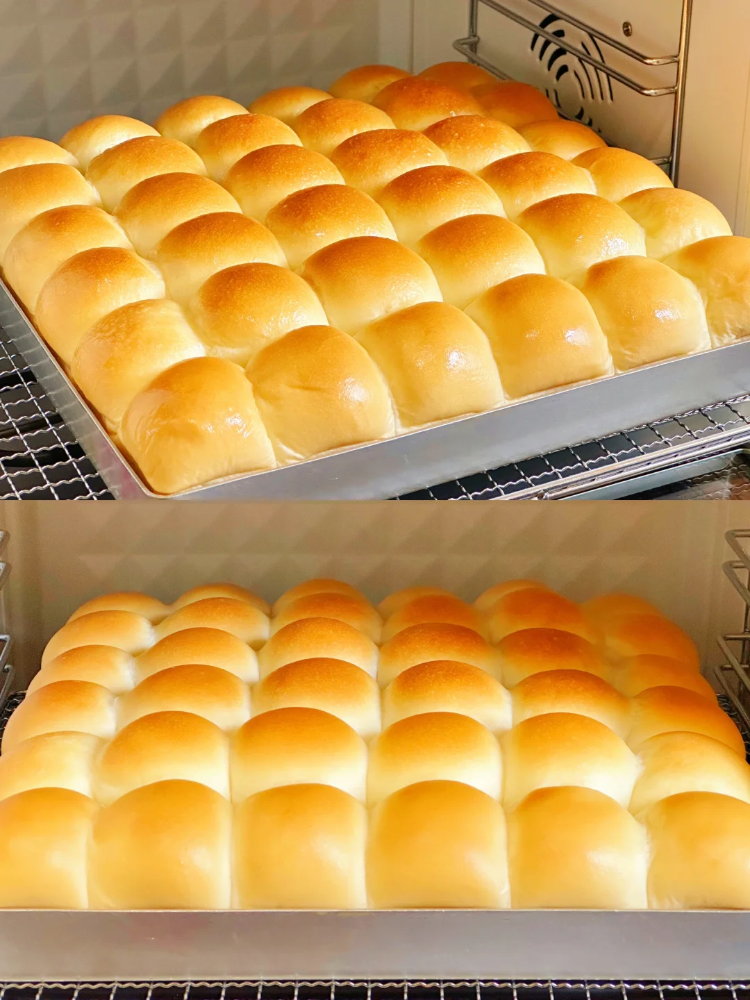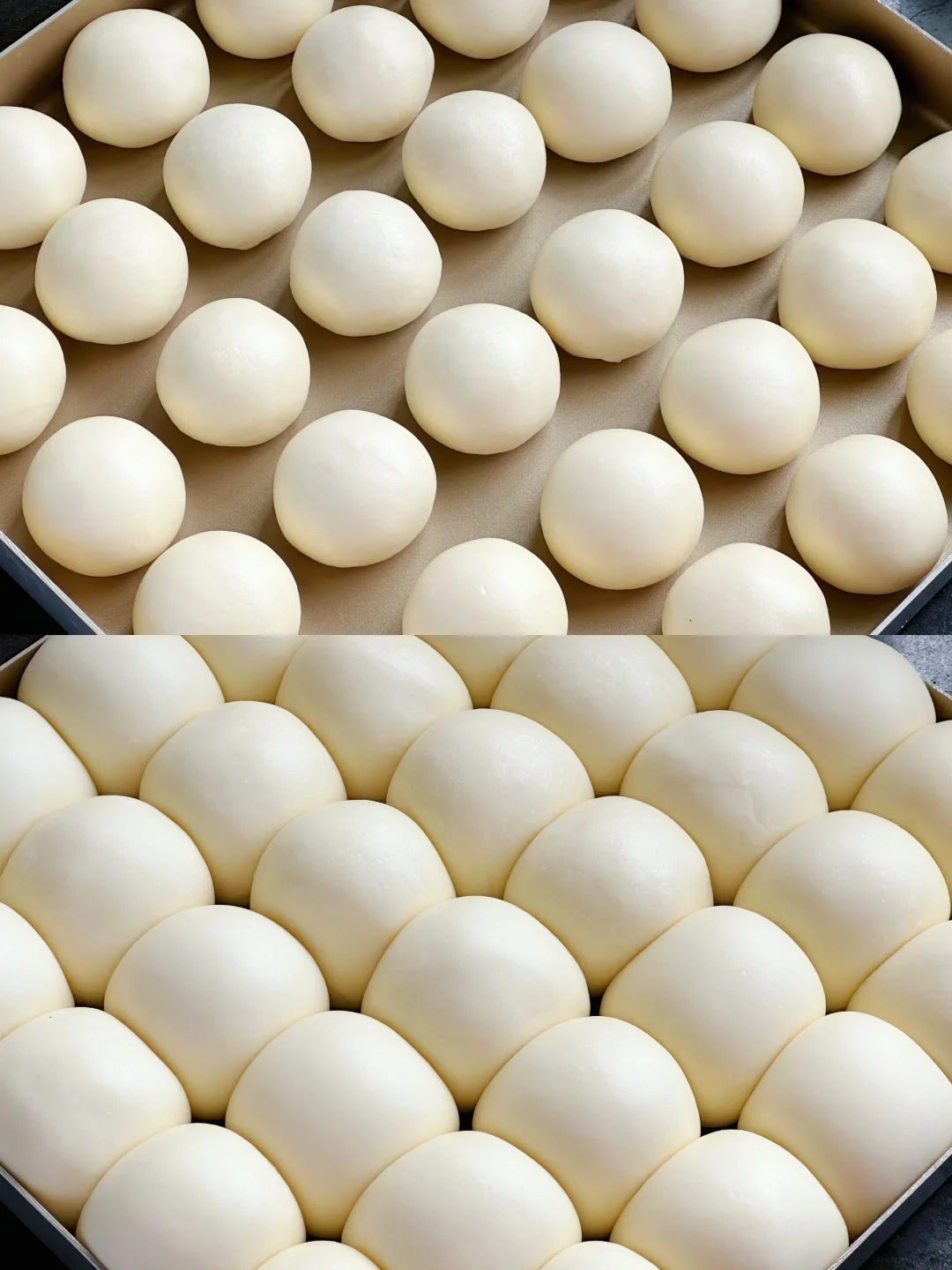2️⃣将面团分成36个面团,揉圆,均匀放在28×28cm的烤盘上。
