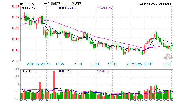 医药50ETF(512120)业绩比较基准为中证细分医药产业主题指数收益率,管理人为华安基金管理有限公司,基金经理为苏卿云,成立(2013-12-04)以来回报为39.41%,近一个月回报为0.45%。