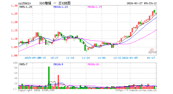 500ETF增强(159610)业绩比较基准为中证500指数收益率,管理人为景顺长城基金管理有限公司,基金经理为张晓南、郭琳,成立(2021-12-13)以来回报为25.22%,近一个月回报为12.21%。