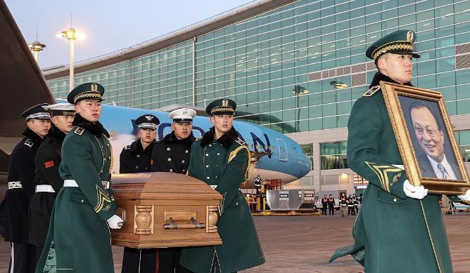 在越南因病去世的韩国前国务总理李海瓒的遗体,已由专机运回韩国仁川国际机场,韩国多名政界人士前往机场迎接。 韩国前总理李海瓒于23日下午1时许抵达胡志明市新山一国际机场准备返韩时因心脏病突然倒地,在接受心肺复苏术的同时被救护车送往当地医院,但于25日去世,时年73岁。