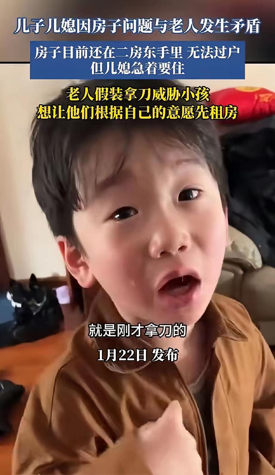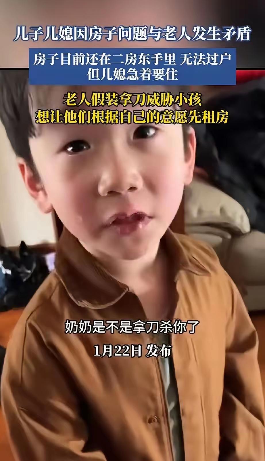 “当把刀架在孙子身上那一刻,这个家已经散了。” 一位奶奶为了逼儿子儿媳出去租房住,居然拿刀对着孙子,就为了让儿子儿媳同意租房。 随后,她解释不是真心要伤害孙子,就是假装一个动作。 可,孩子接收到的是:害怕,还有来自亲人的背叛,奶奶为什么要杀我。 从孩子问妈妈的话可知:妈妈,刚才要杀我的不是奶奶,是吧? 奶奶的自我认知假装,实际操作的行为,深深的伤害到孩子。 孩子害怕到,失去了认知障碍。 奶奶想要儿子儿媳出去租房住,直接简洁明了的告知即可。 非要选择没无可退的一条路。 儿子儿媳会不会离婚另外说,但,养老是绝无可能了。 奶奶做得太绝了。 实话,我要是处在这个儿媳的角度,我坚决不让孩子认这个奶奶,以后不会上婆家家门。 亲情沦为威胁筹码时,特别以孩子作为谈判码,这个家已经没有任何信任的可言。 任何以伤害为手段的“为你好”,都是对关系本质的背叛。 “刀架住的是孩子的脖颈,斩断的却是整个家的未来。”