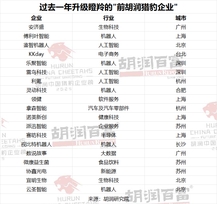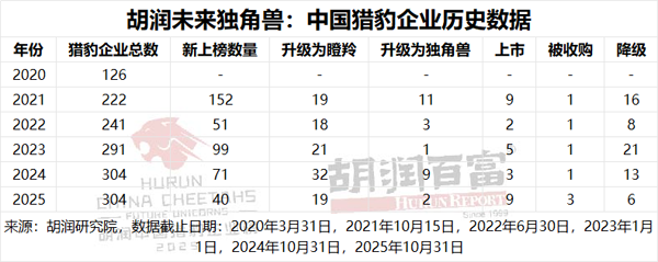 1月26日,胡润研究院发布《2025胡润未来独角兽:中国猎豹企业榜》,榜单列出了全球成立于2000年之后,五年内(即到2030年底)最有可能达到独角兽级十亿美金估值的高成长性企业。榜单显示,304家企业上榜。
