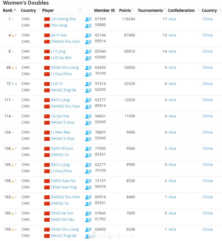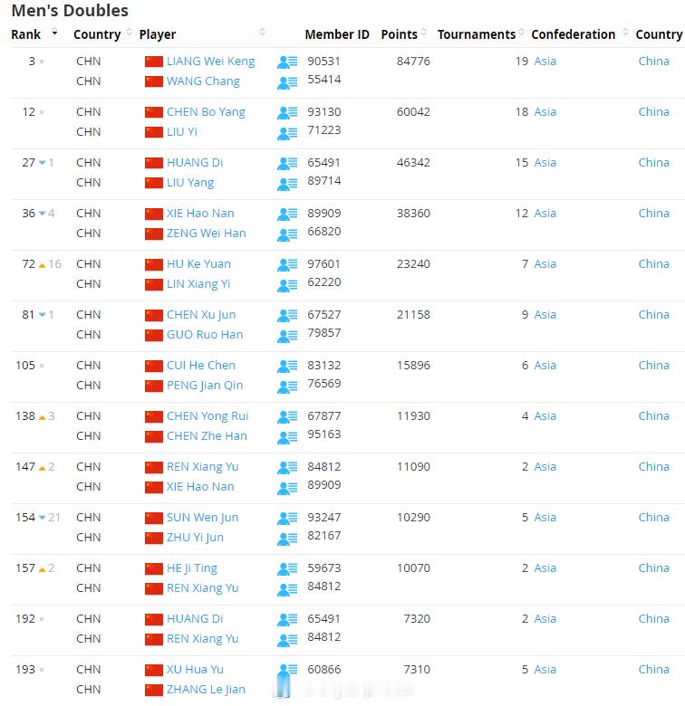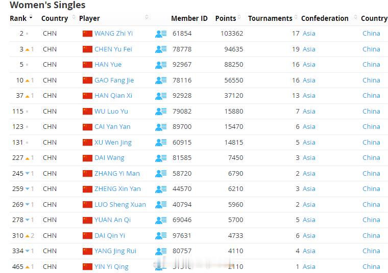 【世界羽联排名0127:陈雨菲重返前三】世界羽联排名2026年泰国羽毛球大师赛1月27日,世界羽联公布了最新一期羽毛球选手世界排名,在雅加达夺冠的陈雨菲排名上升1位至第3。国羽详细排名:男单石宇奇1、李诗沣5、翁泓阳15、陆光祖18、王正行24、胡哲安61、朱轩辰69、董天尧90;女单王祉怡2、陈雨菲3、韩悦5、高昉洁10、韩千禧37;男双梁伟铿/王昶3、陈柏阳/刘毅12、胡珂源/林祥毅72、陈永锐/陈喆涵138、陈旭君/刘阳227、黄荻/孙文骏934;女双刘圣书/谭宁1、贾一凡/张殊贤4、李怡婧/罗徐敏8、坑姝良/李华洲68、;混双冯彦哲/黄东萍1、蒋振邦/魏雅欣2、郭新娃/陈芳卉6、程星/张驰16、高家炫/吴梦莹23、朱一珺/李茜83。