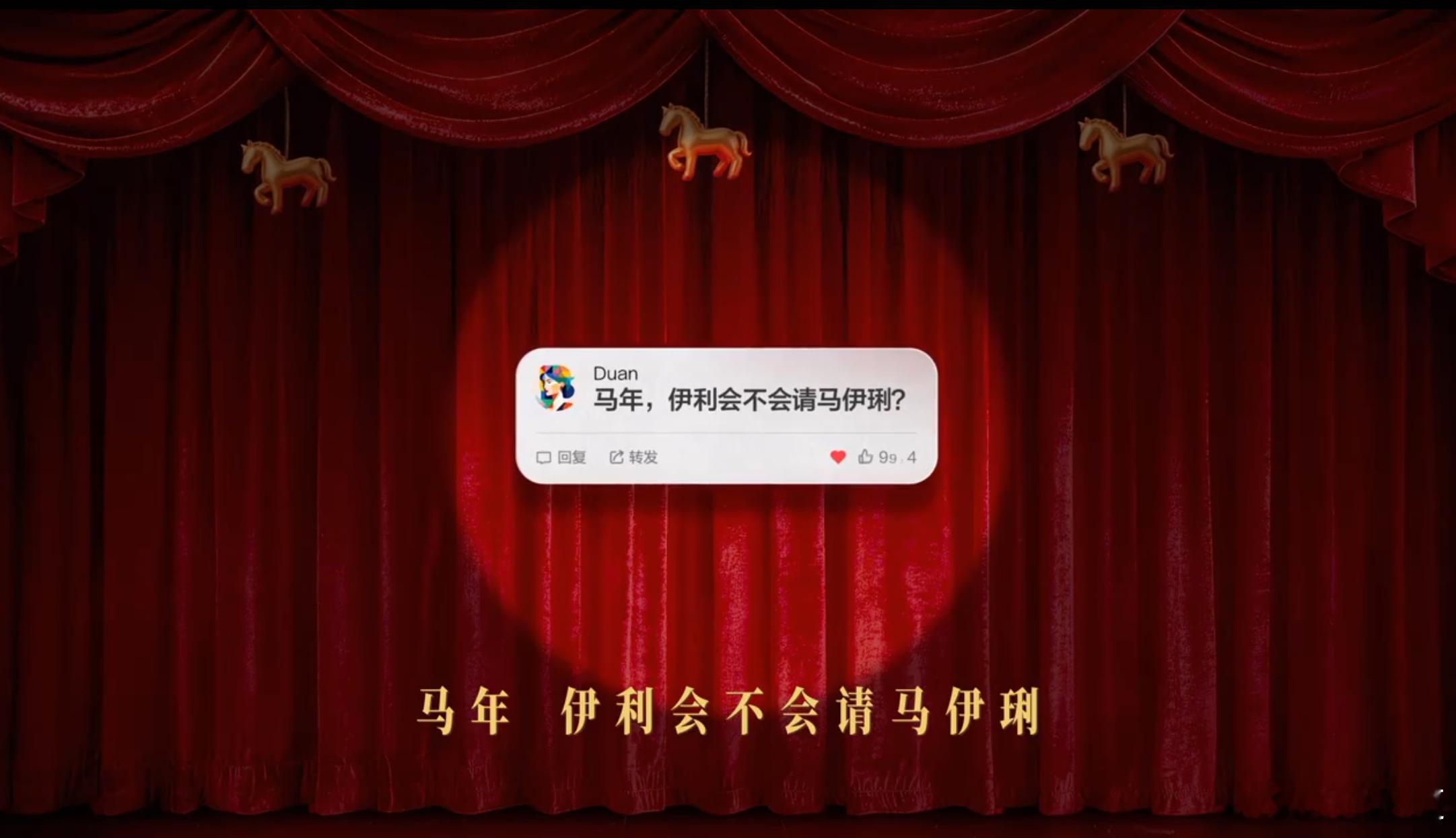马年春联开始文武双全了这个春节,伊利玩出新花样!上联“马伊琍马年选伊利”,巧妙融合明星名、品牌名与生肖年,既有趣又有年味。下联等你来对——无论你是谁,都能接住这份新春祝福!伊利用创意春联连接千家万户,让传统年俗焕发新活力。文能对联,武能送福,这波春节营销,够巧、够暖、够伊利!快来参与接联,把年味和好礼一起带回家!