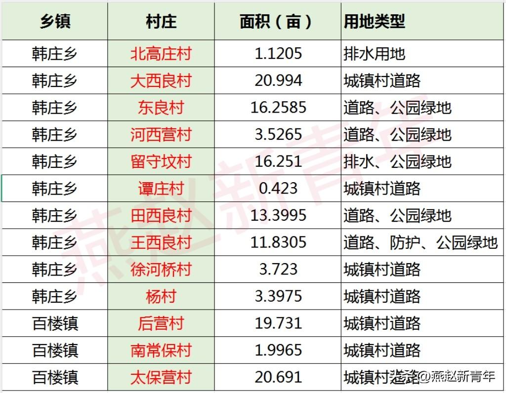 约133.3425亩!保定又有13个村征地获批, 涉及韩庄乡10个村、百楼镇3个村,主要是道路、公园绿地、排水等用地建设,知道都是什么规划项目吗?