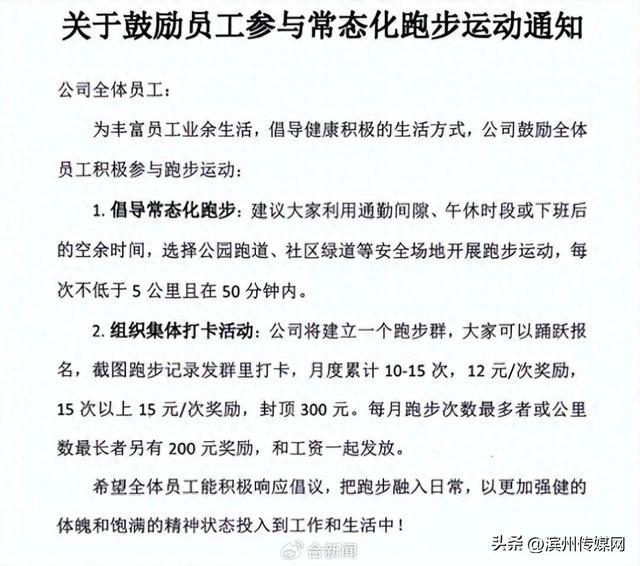 最近几天,在社交平台,一份落款为安徽美迪生态农业有限公司的《关于鼓励员工参与常态化跑步运动通知》引起了不少网友的关注。合新闻记者注意到落款时间是2025年12月11日。