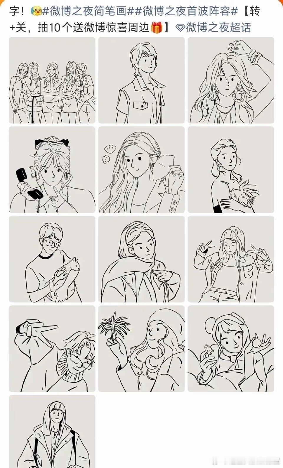 微博之夜阵容官宣来认人!微博之夜明星官宣,全是漫画,你能认出几个?这里知名度最大的咖估计就是来自台湾的甜姐儿陈妍希了。照片来源于陈妍希代言的品牌星芒饰品。这广告拍的是开运红花朵造型的耳饰,但是却被红纸遮得明明白白的。打电话的是程潇,她在韩国《宇宙少女》出道,就是吴宣仪孟美岐那个团。在团时也是ace级别的存在了,在小韩知名度也还可以,cos春丽开球火出圈了。回国后还当上了《偶像练习生》的导师。戴大耳环的是陈昊宇,台湾星光大道出道,但是是个正儿八经的大陆人。双手环抱胸前毛毛领的女明星是代露娃。听名字以为是新疆的,其实正儿八经汉族人,还是辽宁妹子。中央戏剧学院本科毕业的,不过都是演的一些小配角,算是有点知名度的新面孔吧。这不是大名鼎鼎的耳环姐黄杨钿甜么?没想到风波闹这么大依然还能出来活动,看来娱乐圈的包容性不是一般的大。耳环姐不戴耳环都认不出来了。在《山花浪漫时》里饰演柳细莺的合诗雨。戴大围巾的姑娘叫做鹤男,为啥叫这名,估计她老家人是“河南”滴吧。长得挺漂亮的小姐姐,就是知名度实在是差,不过也在《小舍得》《入青云》等热播剧里演配角刷刷脸。比耶的是黄誉博,抱着个爱心抱枕的是刘些宁,韩国务工,回国后在选秀节目《火箭少女303》出道,就是希莉娜依高和张艺凡那个团。现在也拍戏去了。兔子耳朵的是和陈妍希演年下cp火出圈的周柯宇。这次和陈妍希合体出席微博之夜,可把cp粉高兴坏了。穿滑雪服的应该是她吧,这个是来自塞纳河SNH48的袁一琦,应该是塞纳河是她的来时路。连续在2023年和2024年总选第一后单飞,后来签约天娱传媒。不过也是糊糊的。头上绑超大蝴蝶结的是王影璐,现在的身份是演员,其实也是初代大网红。曾经在《异人之下》饰演冯宝宝。开飞机的是张康乐,他在《藏海传》里扮演张起灵。BBB的是青春有你出道的周震南,好像父母也是法制咖。又是一个秀人,小鬼王琳凯。抱哈尼尼玩偶的是章昊,韩国选秀C位出道爱豆,这个组合是时代少年团里没有出道的成员另外组成的一个组合。cos李白的是创造营出道的刘宇。这微博之夜首批放出的名单还真是小咖之夜呢,认人难度非常高。网友们,你们认出几个来了?