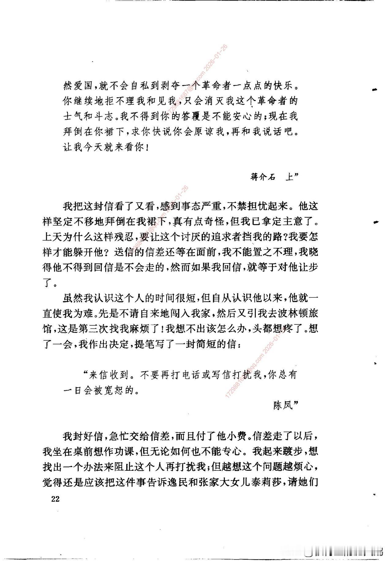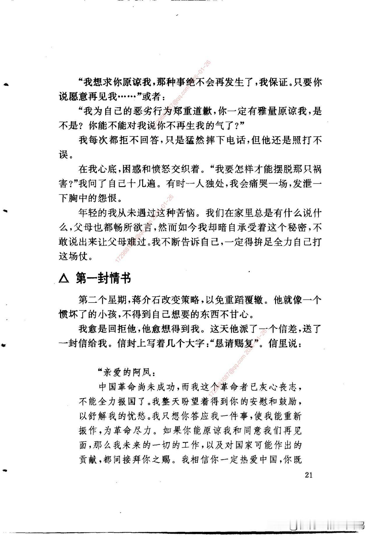 众所周知,32岁的蒋介石去陈家做客,对13岁的陈洁如见色起意,陈母不许,蒋介石就把陈洁如骗进旅馆打算霸王硬上弓,但没上成。 之后蒋介石还以死相威胁,最终通过道德绑架让15岁的陈洁如同意嫁给了34岁的蒋介石。 蒋介石是怎么道德绑架陈洁如的呢? 举个例子,在蒋介石给陈洁如的情书中是这么写的: 【我相信你一定热爱中国,你既然爱国,就不会自私到剥夺一个革命者一点点的快乐。你继续地拒不理我和见我,只会消灭我这个革命者的士气和斗志。】 陈母不同意,至于陈父么,有个大瓜,当然,跟陈父本人无关了。 陈洁如15岁的时候陈父病逝,蒋介石直接在陈洁如守孝期间托人向陈洁如提亲。 麻痹的,34岁的老流氓向15岁的重孝在身的女孩子提亲,你他妈是不是觉得自己很浪漫? 啊对了,蒋介石托人向陈洁如提亲的时候陈父甚至还没下葬。 说白了就相当于在陈父的灵堂上对着陈父说:“嘿,老登,我泡你女儿了。”
