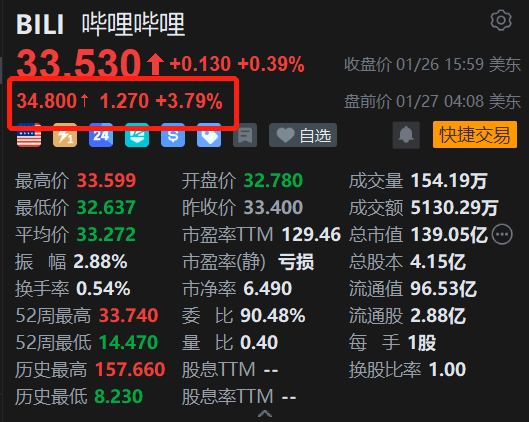 哔哩哔哩港股今日收涨近6%,带动哔哩哔哩(BILI.US)美股盘前涨3.8%。消息上,B站加入春晚大战,首办“大年初一联欢会”。1月27日,B站首次官宣新IP“2026bilibili大年初一联欢会”。B站联欢会邀请了新老喜剧人、国民艺人及新生代演员共同参与,旨在打造一场面向全年龄段观众的合家欢晚会。在本次联欢会上,相声、小品、杂技等传统的说学逗唱形式都会以B站创意整活的新面貌回归,素描喜剧(sketch)、说唱、宅舞等年轻人喜闻乐见的形式也将同台亮相。