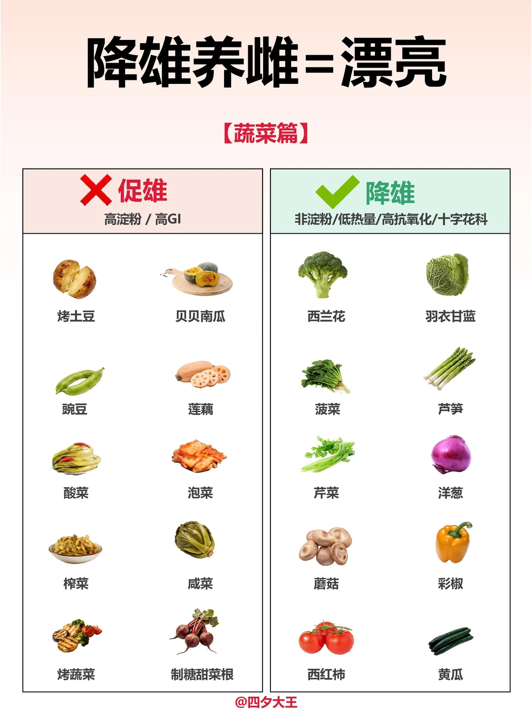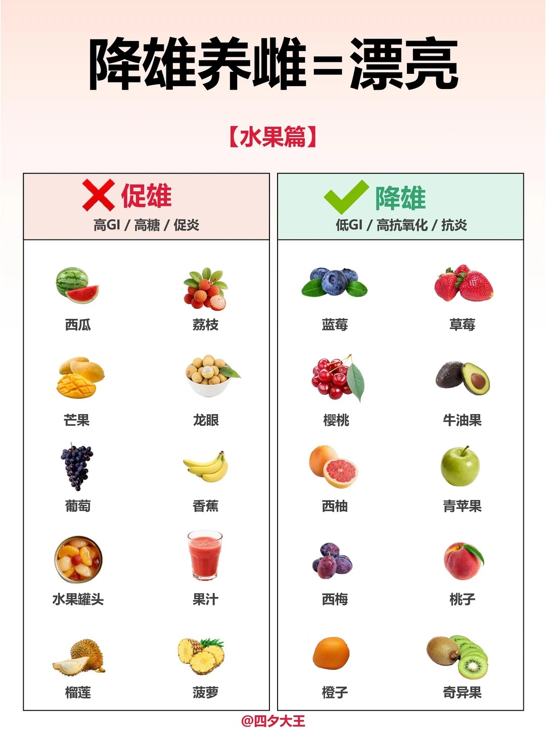 降雄=漂亮不长痘‼️50个降雄饮食清单✅