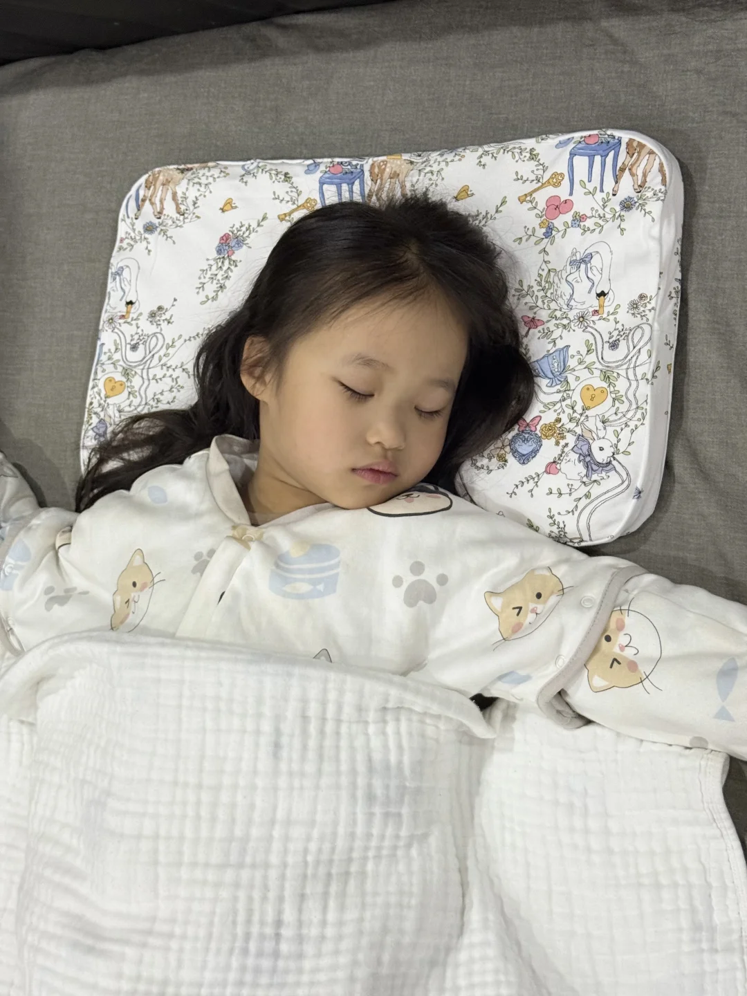 终于找到一个不闷汗的硅胶枕,摸上去软软的,女儿睡得很香,再也不担心睡觉哼唧了😁 -