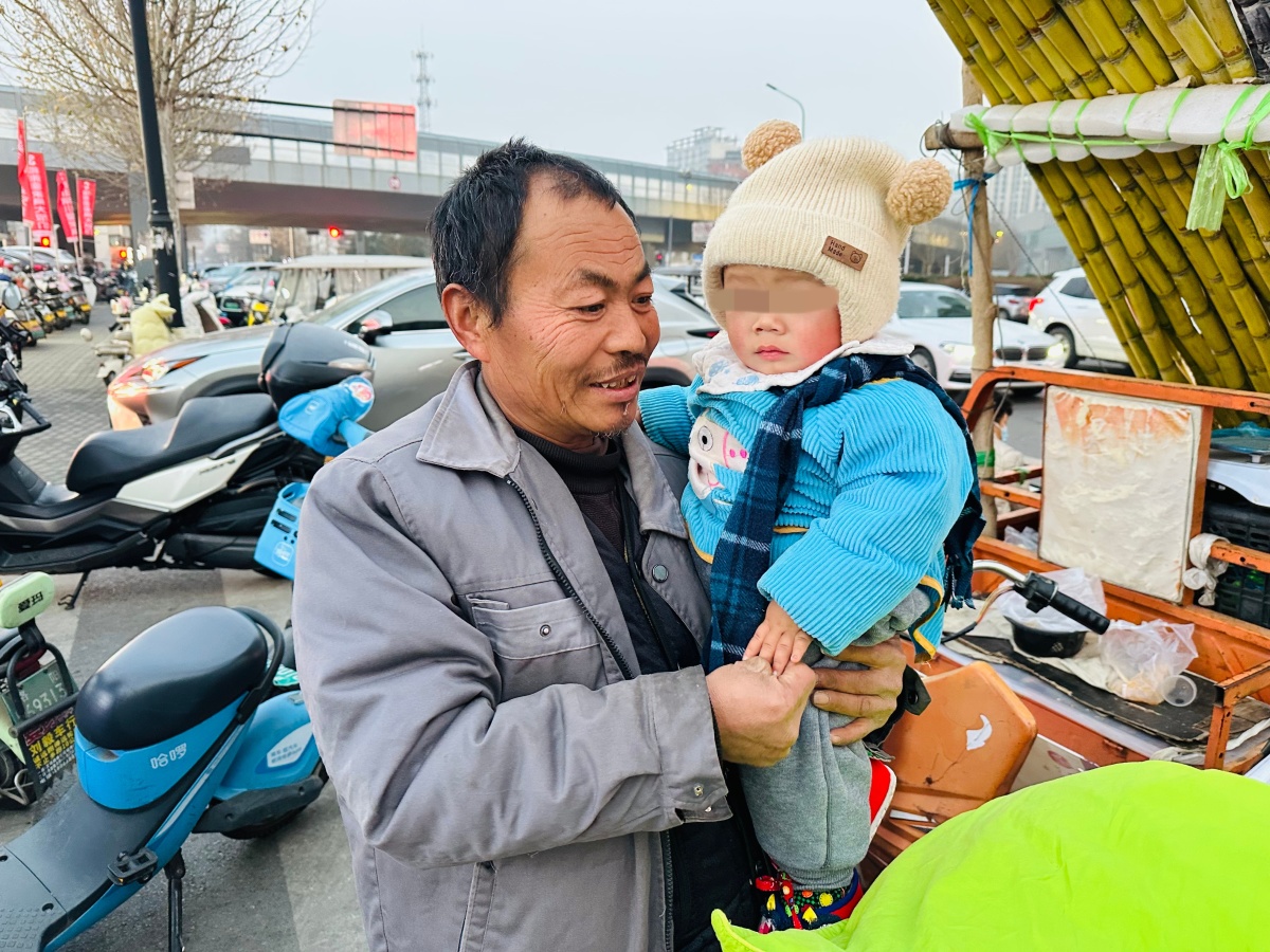 最近,不少网友刷到了一条爷爷带着孙子,在洛阳街头卖水果的视频。1月26日,记者在升龙广场附近找到了他们。爷爷正在给顾客称水果,孩子躺在一边睡着了。