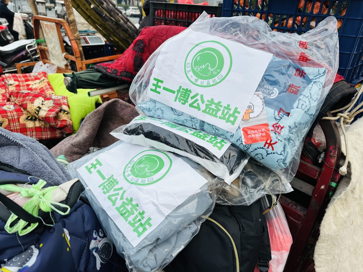 “这是王一博公益站给孩子的羽绒服,有一大一小两件,这条棉裤您可以穿。”得知爷孙俩在街头卖水果的事,王一博公益站委托记者送上羽绒服,并愿意提供后续帮助。