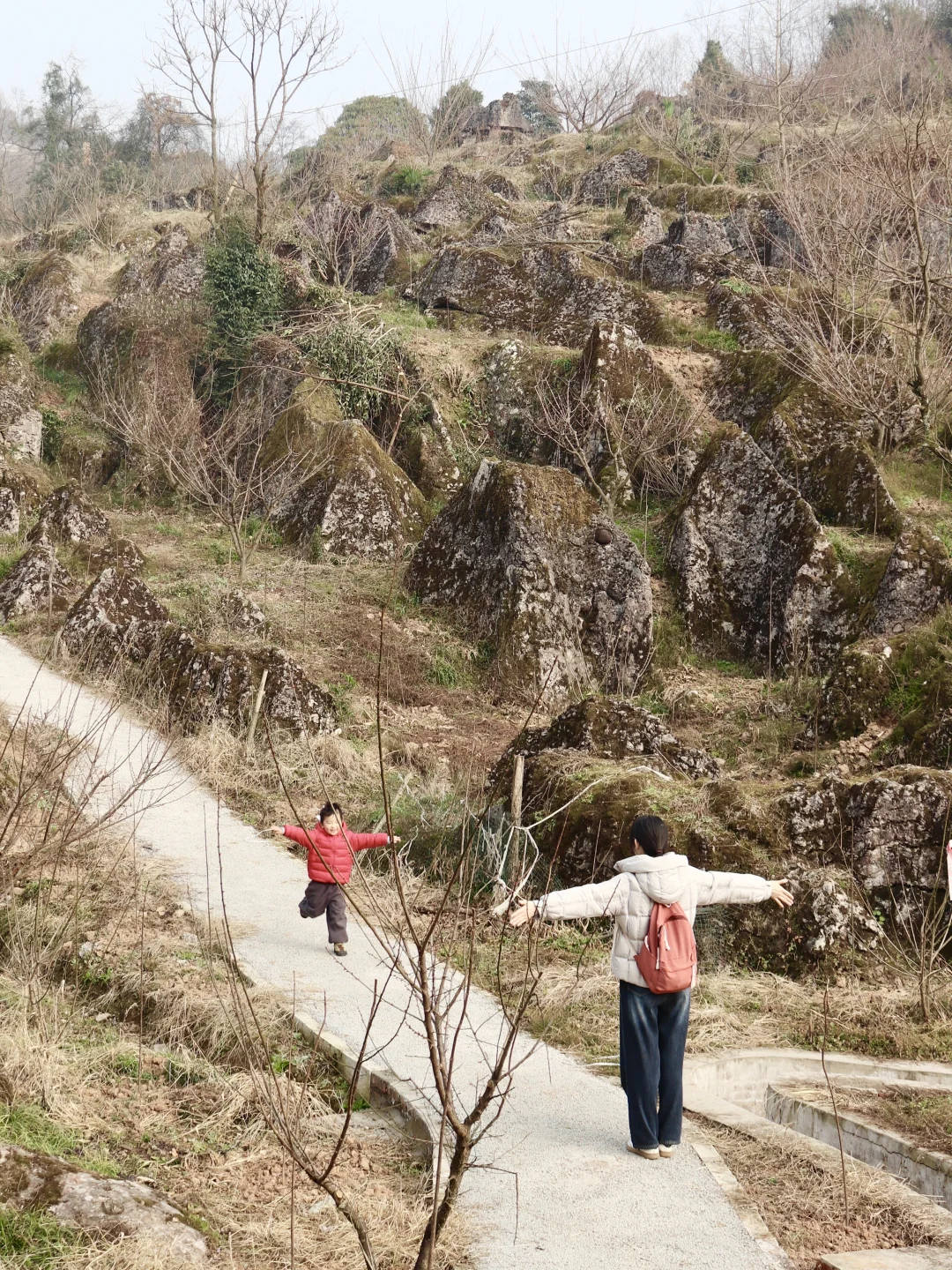 🌸这里满山遍野的杏花梅花,争先开放,山野烂漫,不止十里~~~ ⛰️林下大石,石上青苔,与白色青梅花相映成景,梅林中的一片怪石群,天然的墨石地貌,怪石奇林,非常罕见有趣~~~ 我心中赏花徒步的天花板❗️ ⛳️地址:大邑鹤鸣山(大坪村) 🎫门票:无 🚗自驾:成都南门出发1.5h,全程柏油路,路况很好 🐶宠物:可带宠物 🍚餐食:山里的农家乐几乎都还没开门,我们踩过的坑😂建议吃完饭再上山!!! 🌟轻徒步攻略如下 📍导航:大坪滑翔伞乐园,沿着公路继续开几百米,可以看到林盘公园停车场,停车场周围全是花!!! ⏳徒步时长:3-4小时,难度低,3岁以上的娃可冲~ 🗺️徒步路线:桃李大坪林盘公园停车场—天谷洞—怪石梅林—返回。天谷洞还可探洞 ⚠️划重点❗️只想赏花不想徒步的攻略如下⬇️ 赏花地点有3处 ✅第一处:林盘公园停车场周围,公路两旁大片大片的杏花梅花,非常出片。位置在最后一张图,下车就可以拍拍拍 ✅第二处:📍导航大邑聚仙阁农庄,这里更出片,人更少!!观景台能俯瞰整片梅林,也有停车的地方 ✅第三处:怪石梅林,这里既有梅林又有怪石林 📍导航荣华农庄,然后从农庄对面的小路进去,沿着小路走5分钟就能看到满山坡的怪石林!!见倒数第一张图 建议: 1,呼吁大家一定要带走自己的垃圾,不要破坏山野烂漫的美景 2,⚠️一定不要穿白色裤子和鞋子,要穿防滑防水的鞋子,小朋友带上备用的裤子,林间草地露水多,鞋子裤子容易湿