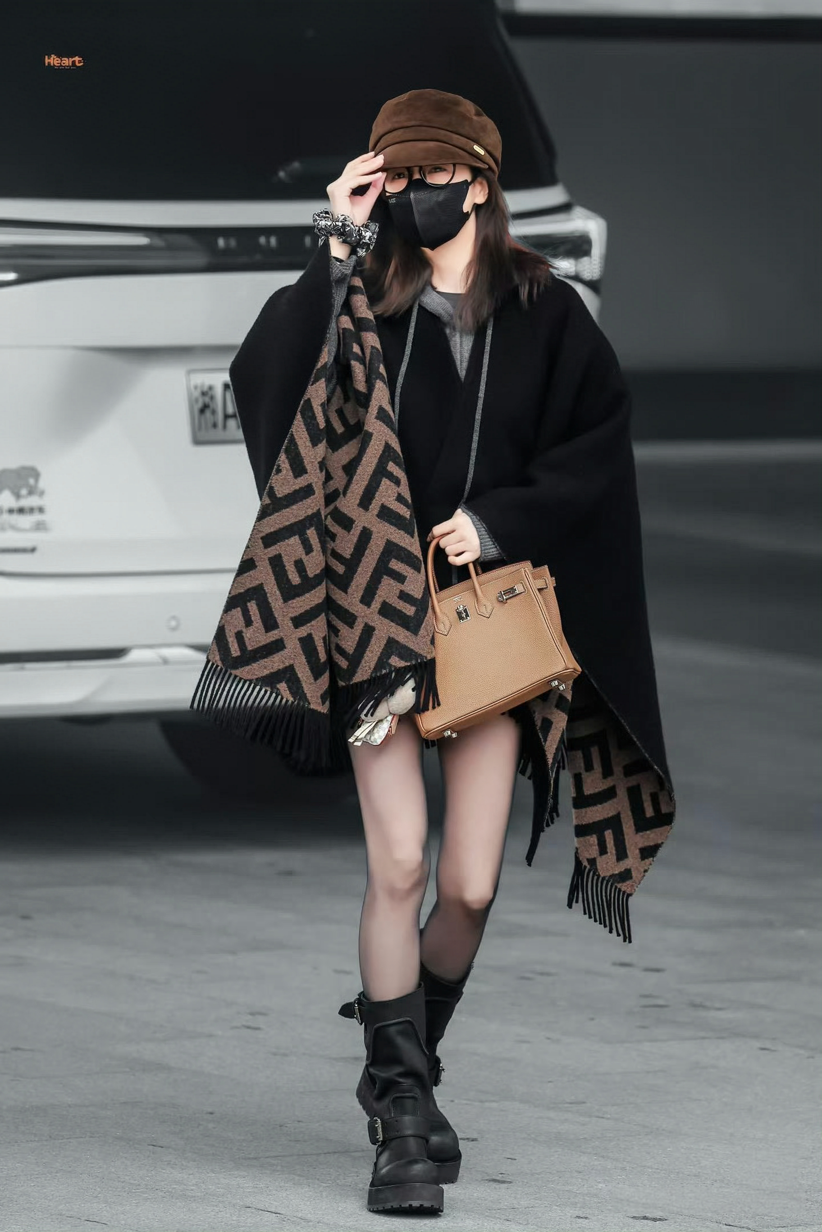 高圆圆这松弛感穿搭,我直接抄作业✅白毛衣配腋下包随性又温柔,皮夹克搭百褶裙