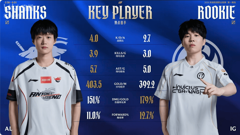 AL vs IG赛前中单对比:Shanks多项占优,Rookie伤转更佳