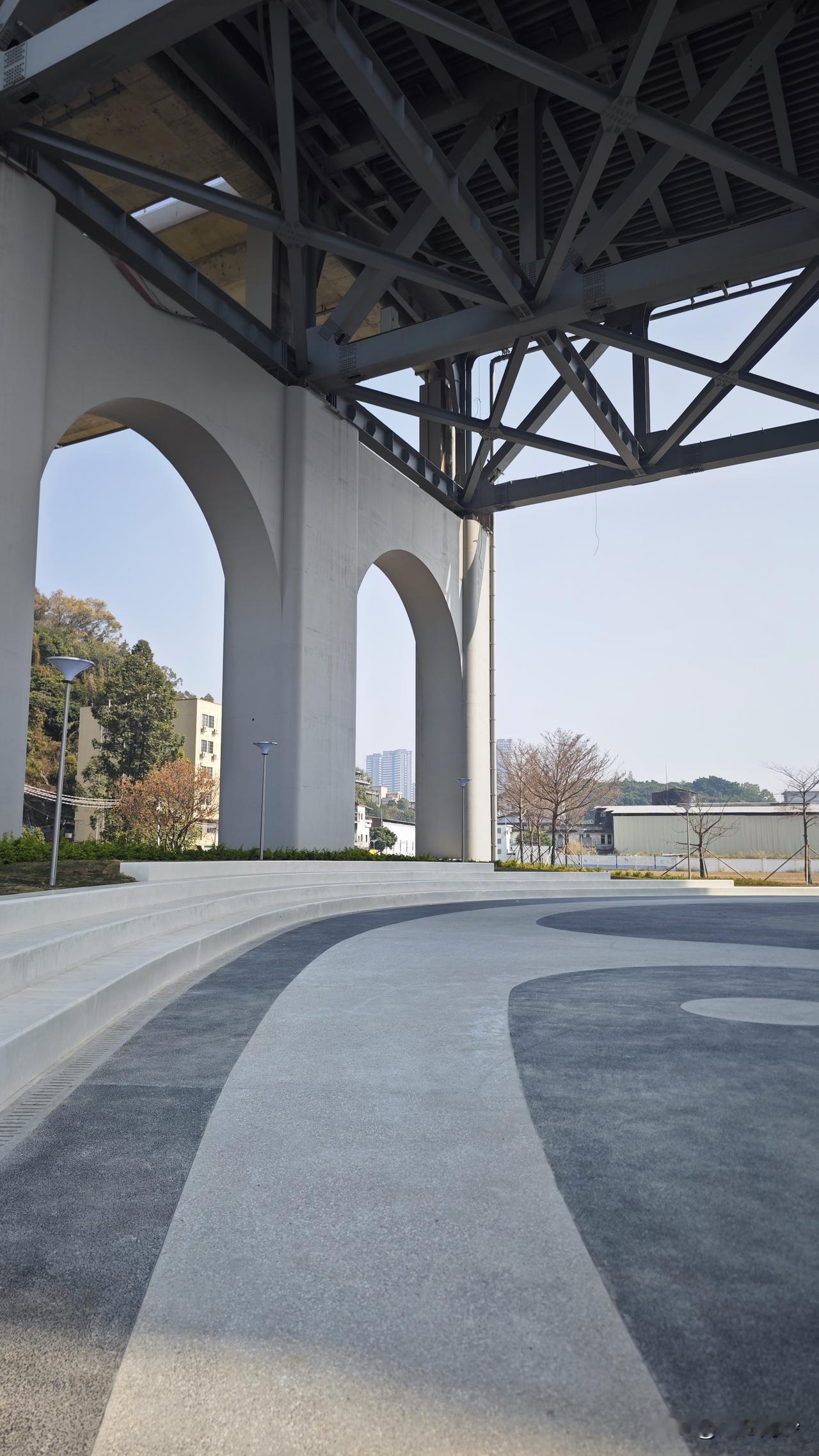 好吧,对南沙情侣路的期待度又降低了!明珠湾大桥桥底这里规划图说是搞一个月季公园,现在看工程应该算是搞完了。 其实就是在桥底搞了一个广场,然后弄了一排长的座椅,中间看起来应该是一个喷泉,然后这桥柱也没有涂绘。一丁点娱乐设施也没有,一颗月季也没看到,真的是设计图卖家秀,真实落地大缩水。 不知道接下来一路的多少个台多少个亭的,落地效果会缩水多少呢? 让我再次想起当年的金洲涌提升,有多期待就有多失望。