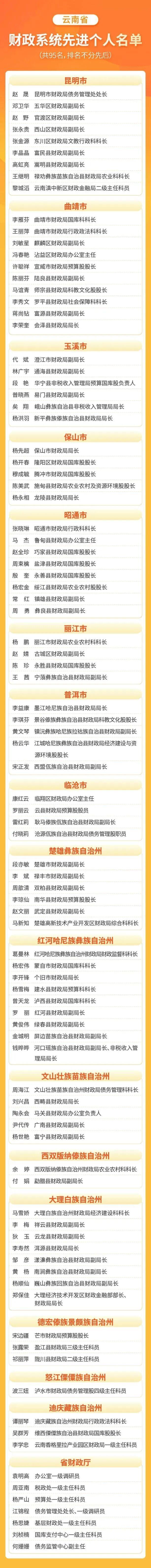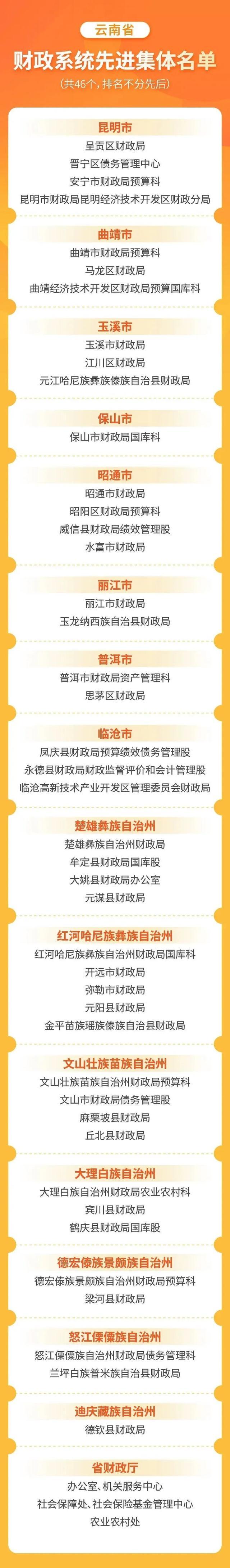 日前,云南省财政系统先进集体和先进个人表彰大会在昆明召开。省财政厅、省人力资源社会保障厅决定,授予昆明市呈贡区财政局等46个集体“云南省财政系统先进集体”称号,授予赵晟等95名同志“云南省财政系统先进个人”称号,其中,楚雄州4个集体、6名个人上榜!