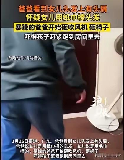 “有这样的父亲,何其不幸!”广东,女儿洗了头发,又吹干了头发,父亲却发现她的头发上有头屑,就一口咬定女儿用了纸巾擦头发,女儿反驳,说自己是用毛巾擦的,结果父亲暴怒,砸了吹风机,又砸了女儿的椅子,女儿恐惧地躲进房间,父亲更暴躁了,不停地砸女儿的房门,妻子制止丈夫,被丈夫殴打了,女儿的门被砸开之后,女儿也被父亲打了几巴掌。 你就想吧,一个小姑娘刚洗完头吹得半干,就因为头发上飘了点白花花的头屑,她爹就跟疯了似的。非说她是用纸巾擦的头,还不听解释。孩子小声辩解一句“我用的是毛巾”,直接就捅了马蜂窝。 那男的先是把吹风机往地上一掼,“哐当”一声,塑料壳子都裂了。接着又一脚踹翻女儿的椅子,椅子腿在地板上划出刺耳的声响。小姑娘吓得魂都飞了,连滚带爬躲进房间,“砰”地关上门。 结果这爹更来劲了,对着门板拳打脚踢,嘴里还不干不净地骂:“你给我出来!今天不打死你!”孩子妈看不下去,上前拉了一把,直接被他一拳怼在胸口,趔趄着摔在沙发上。 等他把房门砸开,红着眼冲进去,对着女儿的脸就扇了两巴掌。清脆的巴掌声里,孩子的哭声都被吓没了,只剩肩膀一抽一抽地抖。 说真的,这事儿看得人牙根都疼。我前阵子在小区楼下也见过一幕:一个小男孩不小心摔了一跤,把新买的球鞋蹭脏了。他爹非但没扶,还当着一圈人的面骂他“废物”。可转头我又刷到个视频,另一个爸爸接孩子放学,孩子考砸了,他没发火,反而笑着摸了摸儿子的头:“没事,下次咱们一起找找问题。” 同样是当爹的,怎么差别就这么大?一个把孩子当出气筒,一个把孩子当宝贝。更可气的是,总有人跳出来说“他也是为孩子好”“打是亲骂是爱”。可你见过哪个“爱”是靠拳头和巴掌表达的? 这种“为你好”的鬼话,说白了就是欺负孩子不敢反抗。那些藏在日常里的吼骂、摔东西,还有动不动就上手的巴掌,比家暴更可怕。它会让孩子觉得“我就是个错”,长大以后要么变得唯唯诺诺,要么就学会用同样的暴力对待别人。 你小时候有没有被爸妈不分青红皂白骂过、打过?你身边有没有这种打着“爱”的旗号伤害家人的事?评论区唠唠吧,咱们不用讲大道理,就说说心里话。毕竟,只有把这些憋屈事儿说出来,才能让更多人明白:当爹妈哪有那么容易,不是生了孩子就配叫爸妈,得学会好好说话,别让孩子在恐惧里长大。