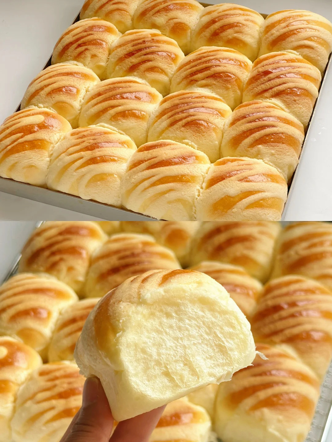 加了酸奶的小餐包真的超好吃!刚出炉的面包体有淡淡酸奶的清香~加上表面脆脆的雪芙酱,真的不要太爱!