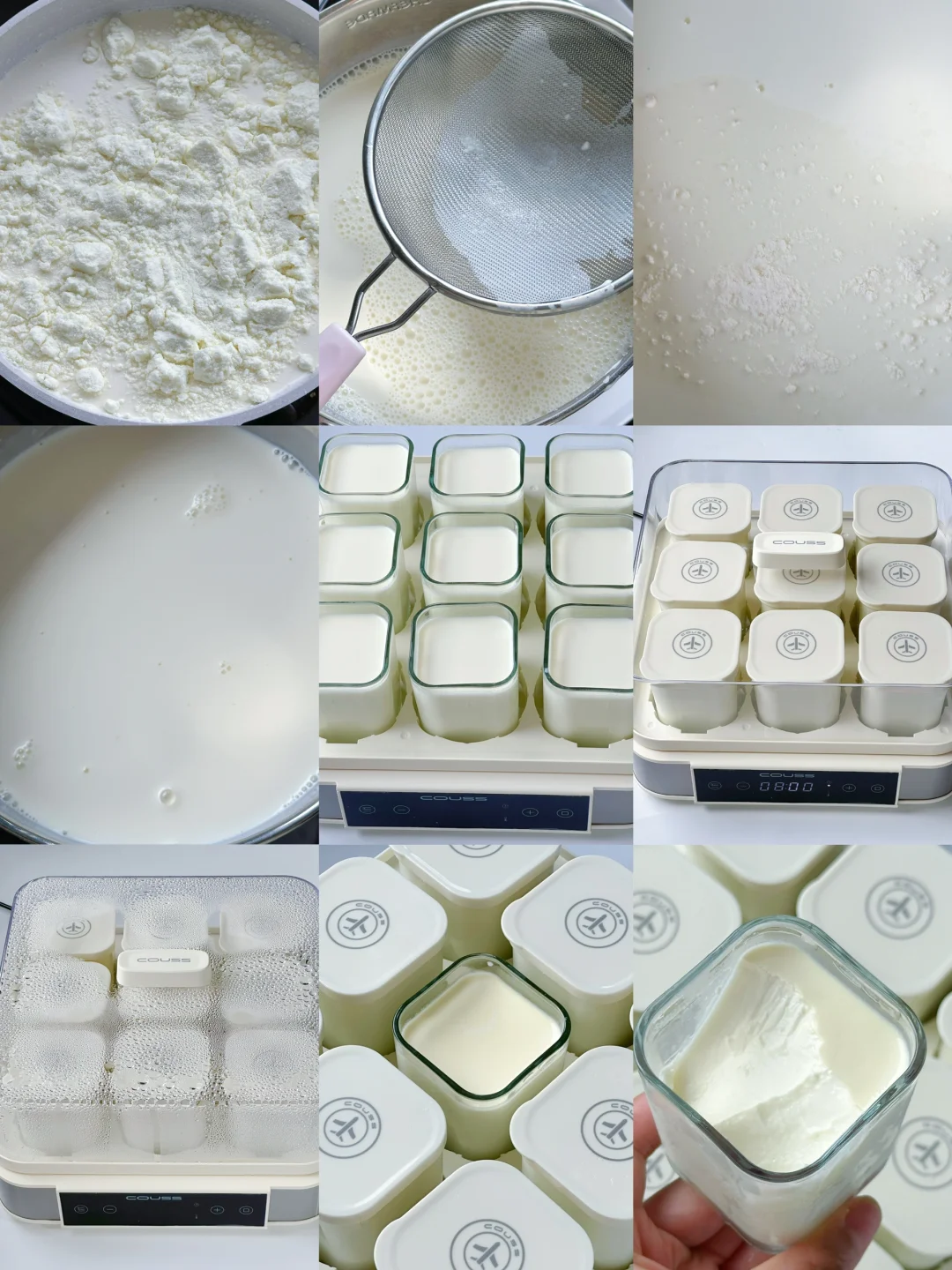 4️⃣COUSS105酸奶机底盘放入50ml水、温度设置42度、发酵时间10-12小时。