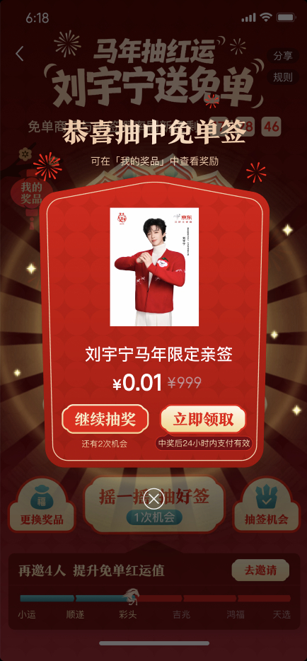 手气爆棚的一天!竟然在京东服饰美妆摇出了新年第一份大礼,刘宇宁新年限定惊喜福利!🎉这必须安利给你们,上京东搜【宁摇宁摇】,跟着宁哥一起摇,好运挡都挡不住!摇完惊喜别忘了去京东服饰美妆年货节逛逛,把好运实物化!买红品、抢5折、抽免单,这才是过年的仪式感!快来试试你的手气,说不定摇出来宁哥亲签的就是你呢?!戳【网页链接】一键直达!刘宇宁京东年货节红运摇 京东买年货 又好又便宜