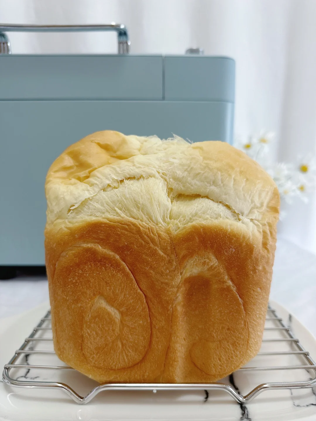 时间到后取出面包桶,将吐司置于晾网上晾凉即可。