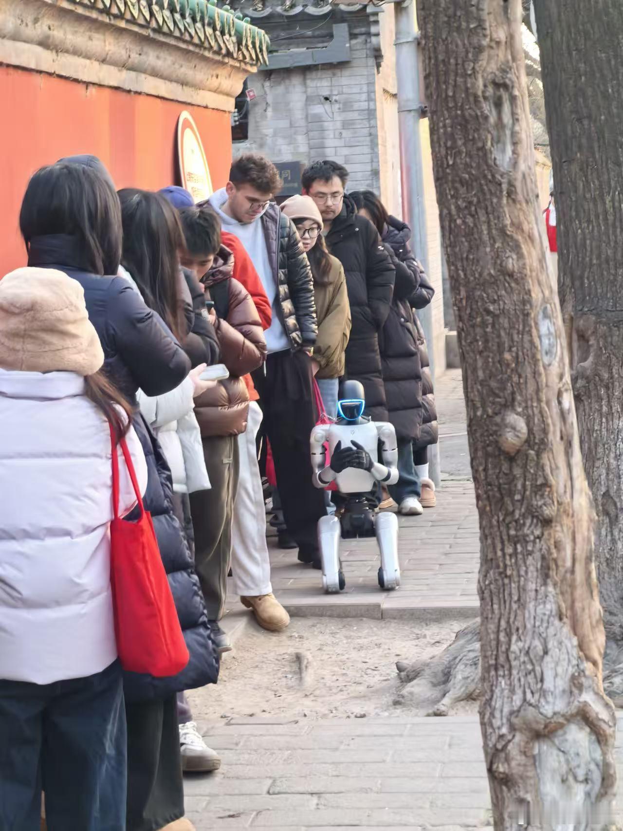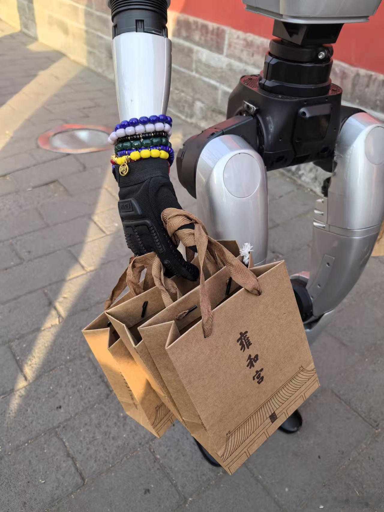 发明机器人在雍和宫祈福的是天才雍和宫的腊八因祈福机器人变得与众不同!从容递粥动作优雅,接过热腊八粥慢饮,寒意尽散,粥里藏着对新岁的万般期许。抽福签拍氛围感 瞬 间,仪式简单却庄重,满是治愈与崭新的希望。