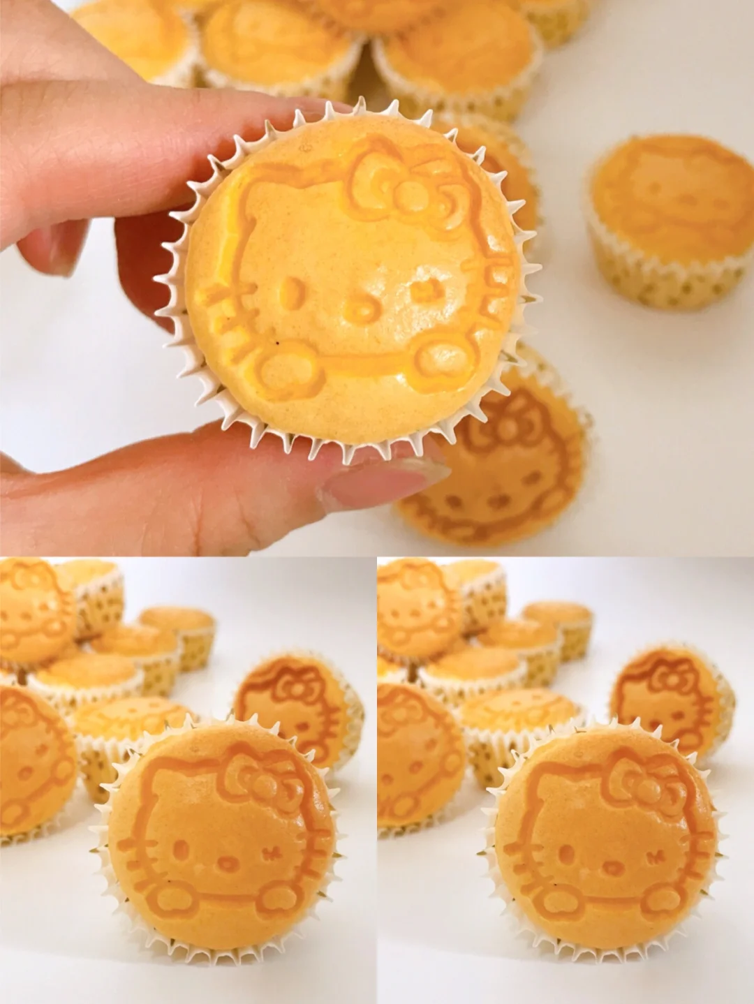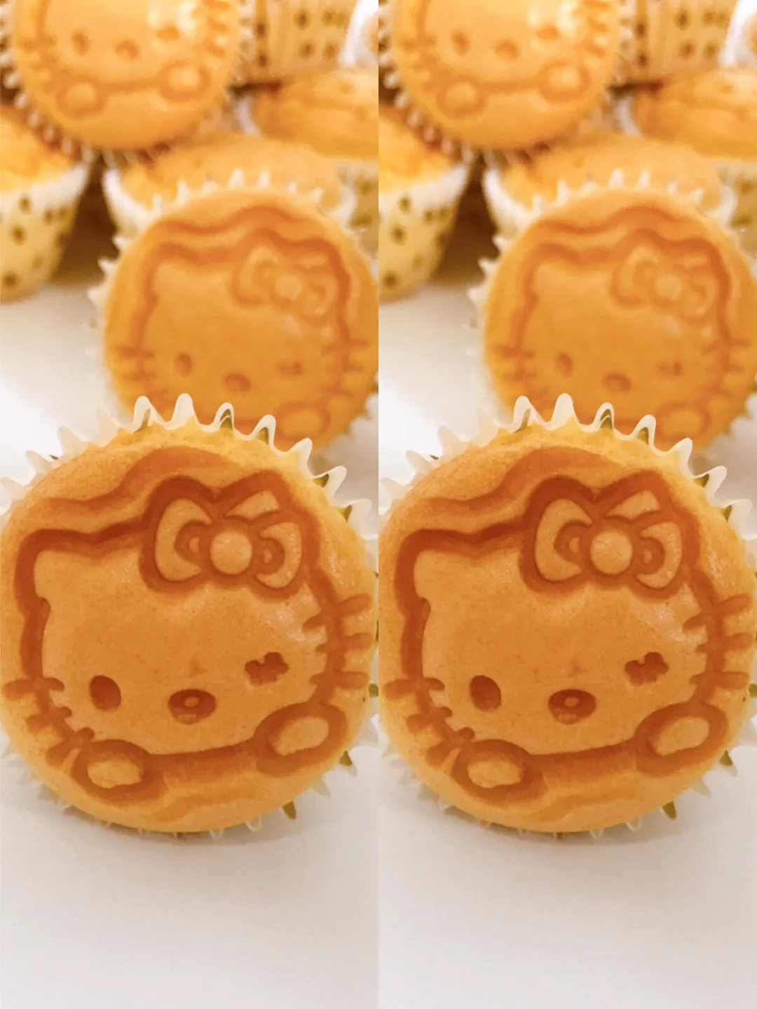🌱出炉振出热气,我用的学厨CHEFMADE的Hello kitty系列的烙印铜模,在煤气上加热1分钟 左右,可快速烙七八个小蛋糕~