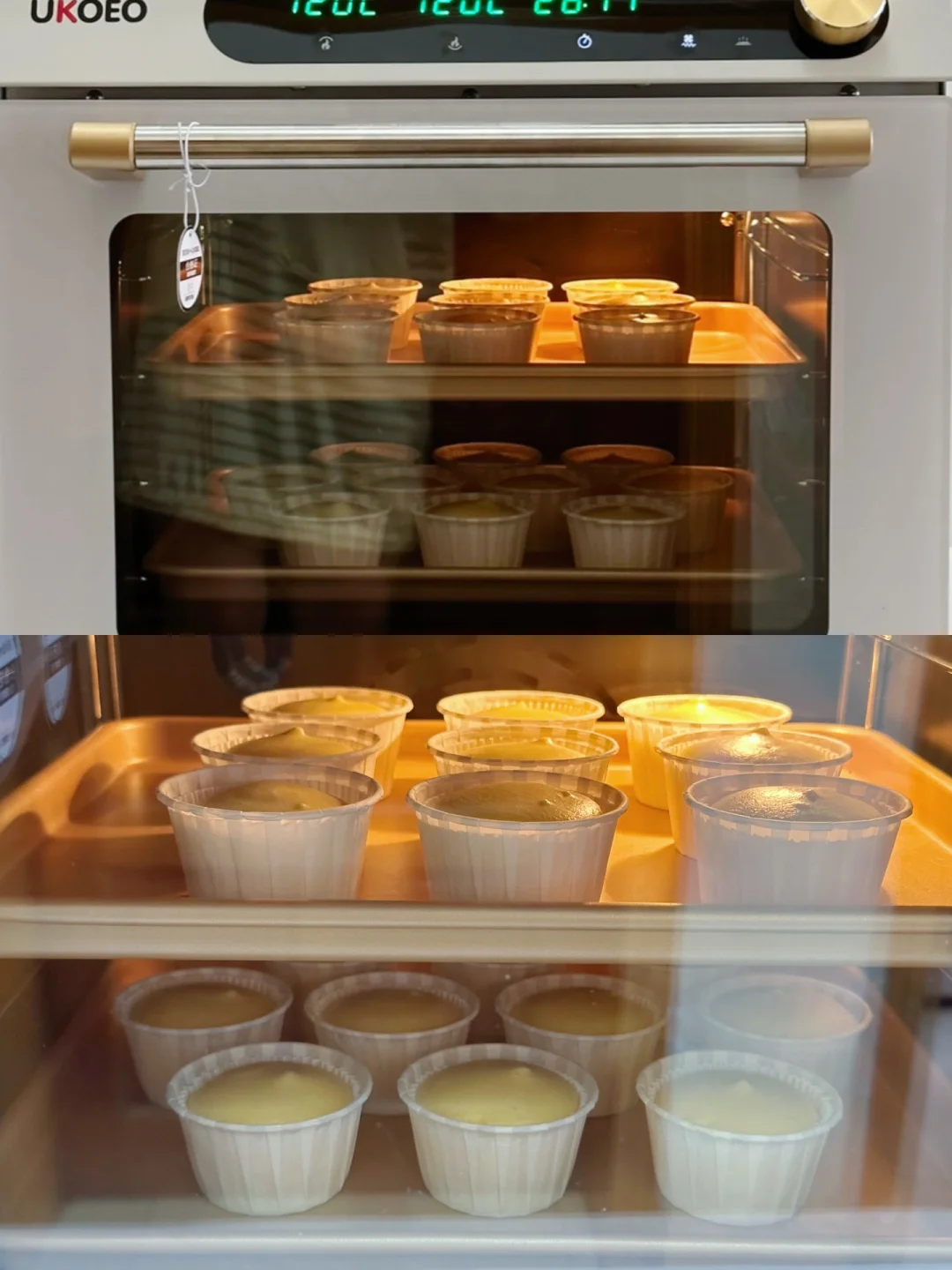 👉烤纸杯蛋糕一定要先低温烘烤定型,最后高温上色,每个烤箱脾气不一样,烤制温度,时间一定要根据自己的烤箱做调整。