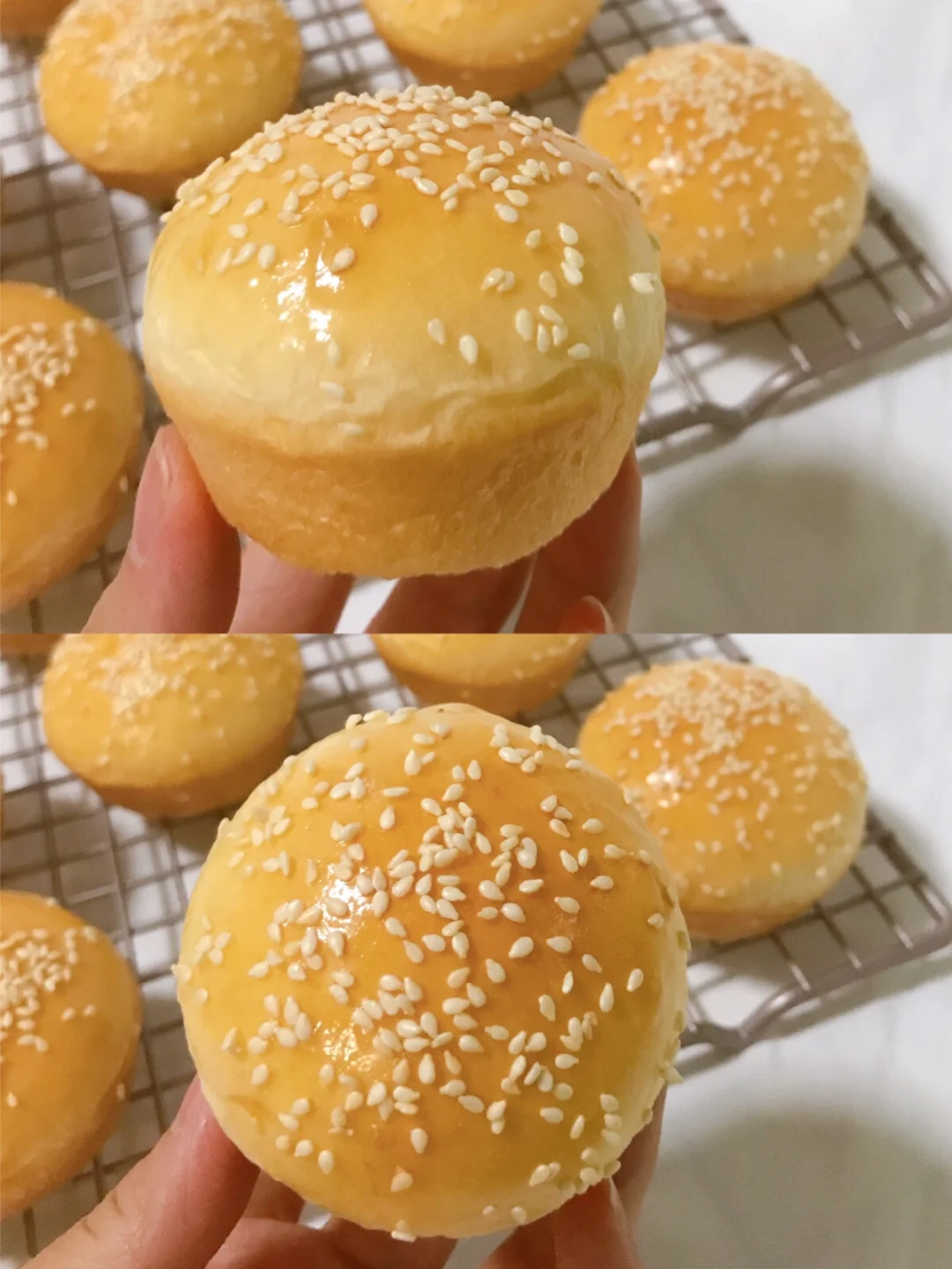 超可爱的迷你汉堡胚,做出来都不忍下口呀!本来说再留着几个第二天来做迷你小汉堡的,结果还没等我拍完照,就被我的小吃货偷吃了好几个~直接当小餐包也是很好吃的啦!但是做成小汉堡,感觉更有食欲哟~