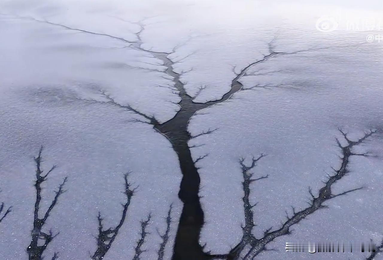 严重怀疑古代水墨山水国画来自于流水绘画,出师于大自然。看看下面这两张图,就在新疆伊犁州特克斯县喀拉托海湿地,寒冬将水面封冻成冰湖,水流在冰隙中流淌,形成罕见的“冰上森林”。像不像水墨意境国画?难道古人是在天空御风飞行时看见过类似的画面,然后画了下来成为国画。[捂脸]