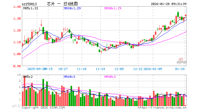 1月28日,半导体ETF(159813)开盘涨0.92%,报1.316元。半导体ETF(159813)重仓股方面,中芯国际开盘涨0.76%,海光信息涨2.05%,寒武纪涨0.69%,北方华创涨0.95%,兆易创新涨2.15%,中微公司涨2.50%,澜起科技涨1.17%,豪威集团跌0.05%,拓荆科技涨1.01%,长电科技涨2.20%。