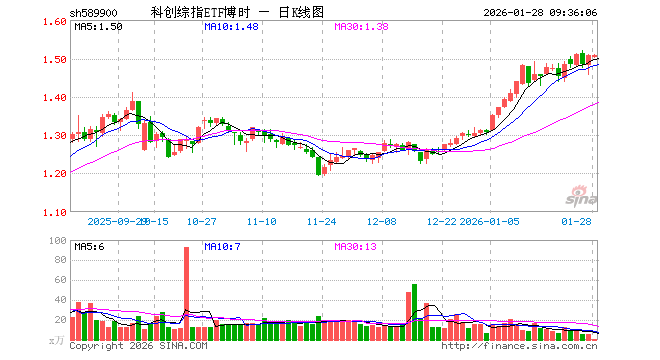 1月28日,科创综指ETF博时(589900)开盘跌0.27%,报1.503元。科创综指ETF博时(589900)重仓股方面,寒武纪开盘涨0.69%,海光信息涨2.05%,中芯国际涨0.76%,中微公司涨2.50%,金山办公涨0.27%,澜起科技涨1.17%,百利天恒跌0.25%,联影医疗涨0.38%,影石创新涨0.00%,拓荆科技涨1.01%。