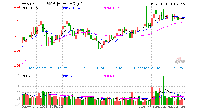 1月28日,沪深300成长ETF万家(159656)开盘涨0.09%,报1.159元。沪深300成长ETF万家(159656)重仓股方面,宁德时代开盘跌0.45%,贵州茅台涨0.00%,中际旭创涨2.66%,紫金矿业涨1.95%,新易盛涨1.44%,寒武纪涨0.69%,立讯精密跌0.04%,恒瑞医药涨0.42%,比亚迪跌0.01%,阳光电源跌0.42%。
