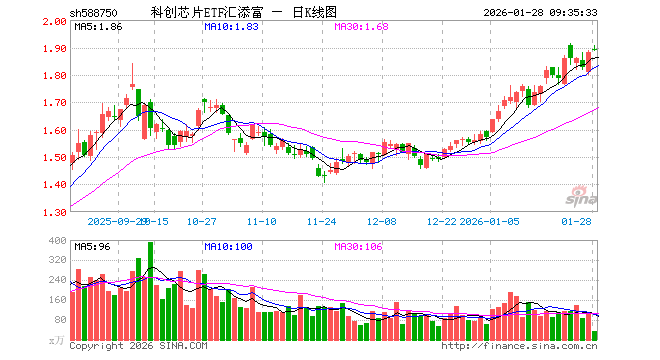 科创芯片ETF汇添富(588750)业绩比较基准为上证科创板芯片指数收益率,管理人为汇添富基金管理股份有限公司,基金经理为孙浩,成立(2024-12-18)以来回报为87.90%,近一个月回报为21.02%。