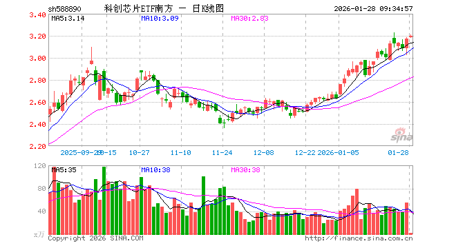 1月28日,科创芯片ETF南方(588890)开盘涨0.44%,报3.186元。科创芯片ETF南方(588890)重仓股方面,中芯国际开盘涨0.76%,海光信息涨2.05%,寒武纪涨0.69%,澜起科技涨1.17%,中微公司涨2.50%,拓荆科技涨1.01%,芯原股份跌0.68%,华虹公司涨0.08%,沪硅产业涨0.63%,东芯股份涨2.36%。