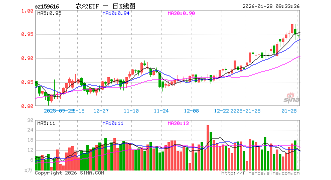 1月28日,农牧ETF(159616)开盘跌0.21%,报0.946元。农牧ETF(159616)重仓股方面,藏格矿业开盘涨0.00%,盐湖股份涨1.02%,牧原股份跌0.33%,兴发集团跌0.33%,海大集团跌0.16%,亚钾国际涨0.17%,温氏股份跌0.20%,正邦科技跌0.30%,新希望跌0.23%,梅花生物涨0.55%。