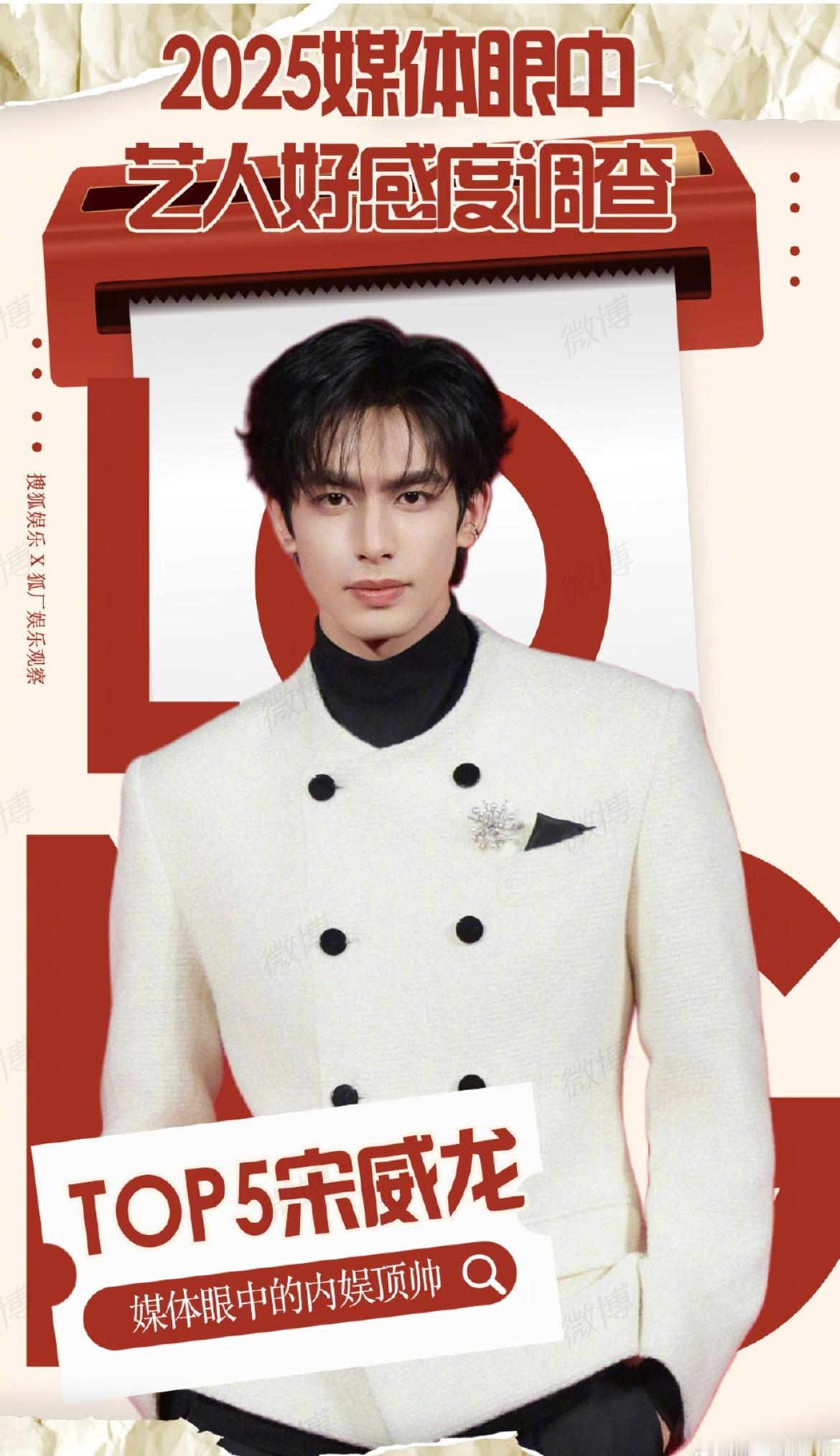 2025媒体好感艺人肖战、白鹿、王鹤棣、李兰迪、宋威龙。 肖战2025媒体好感艺