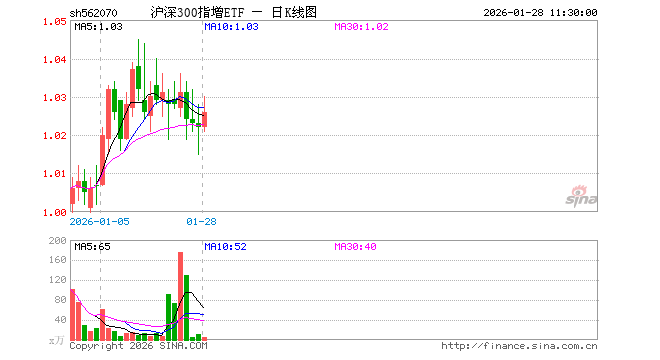 1月28日,截止午间收盘,沪深300指增ETF(562070)涨0.39%,报1.026元,成交额461.69万元。沪深300指增ETF(562070)重仓股方面,宁德时代截止午盘跌0.56%,贵州茅台跌0.92%,中国平安跌0.64%,紫金矿业涨3.82%,招商银行跌0.13%,兴业银行跌1.01%,中际旭创涨2.50%,新易盛涨0.08%,寒武纪跌0.25%,药明康德跌0.43%。