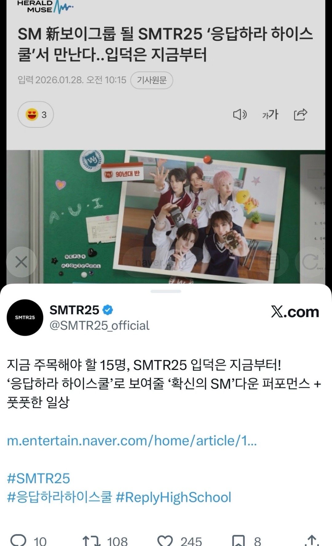 SMTR25 官号引用了“今年将推行大型男子团体组合…”这篇通稿这是要把男练打造