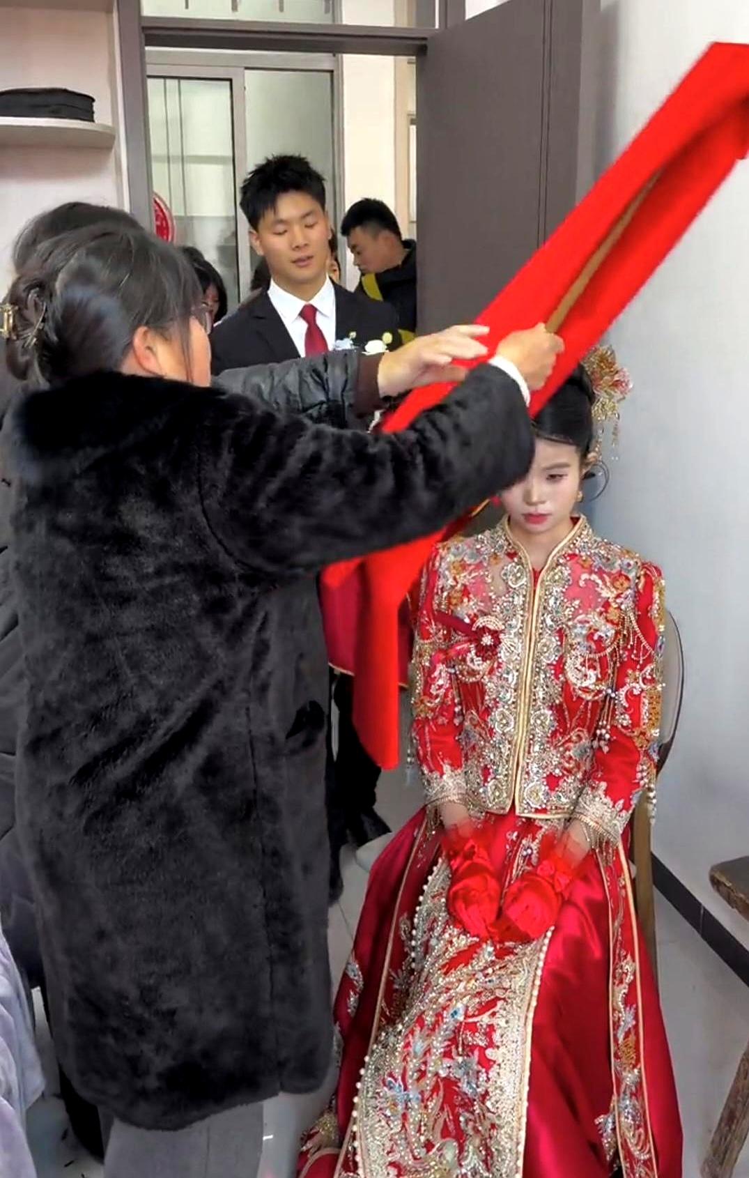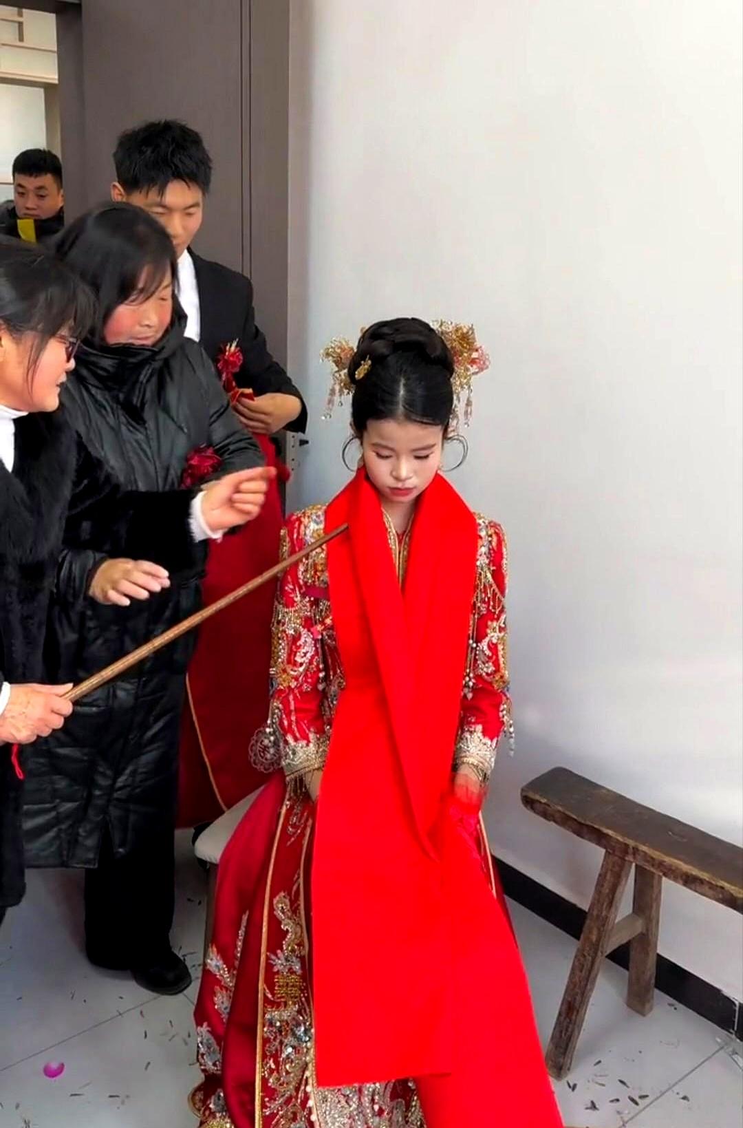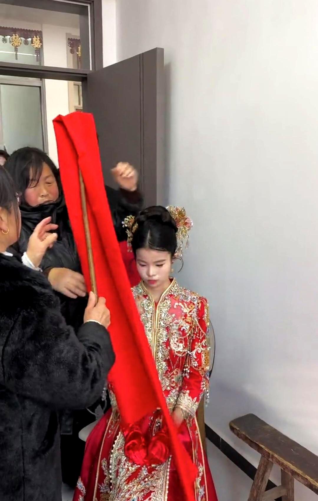 刷到个婚礼视频,这新娘子的模样,直接给看愣了。 满脸的稚气,顶多也就十多岁光景。 这哪里是嫁人,分明是还在上初中的年纪。 旁边还有人用块红布,围着小姑娘的脑袋转圈圈,足足转了四圈。 这是什么路数?是在“封口”,还是某种古老的“驯化”仪式? 想起老友家那个同龄的闺女,这会儿估计还在为没抢到演唱会门票跟爹妈撒娇呢。 这边的父母倒好,舍得让这么小的孩子去背负家庭的重担。 所谓的“习俗”,有时候真是一面照妖镜。 那块红布转的每一圈,看着都像是一道看不见的枷锁,硬生生把一个本该在操场奔跑的灵魂,困在了这方寸之间。 这喜气,沾得让人心里发沉。