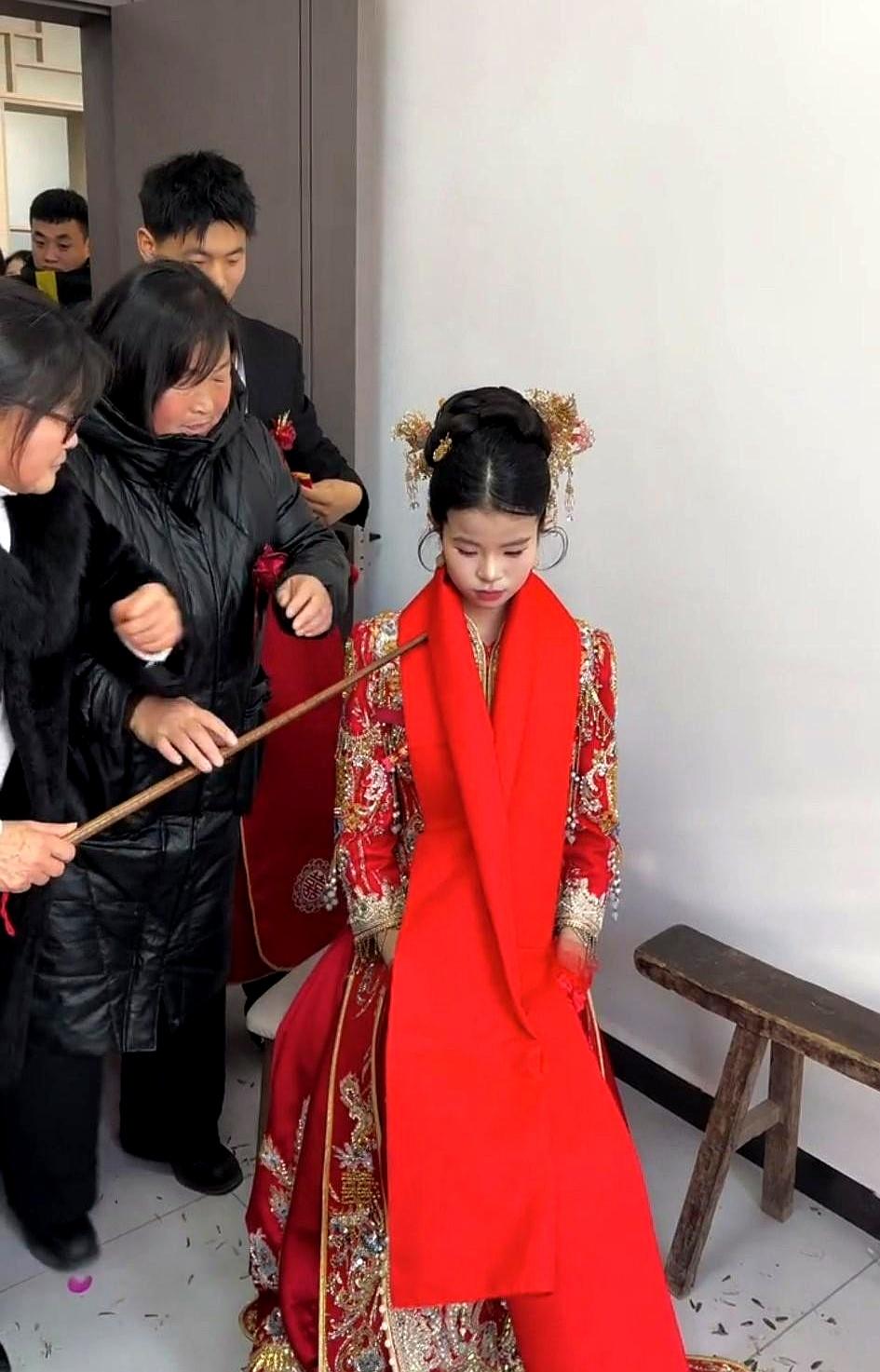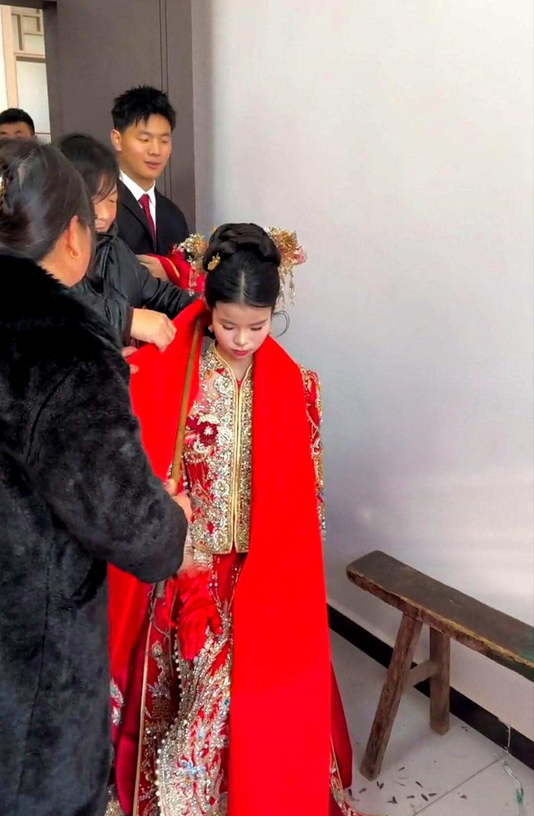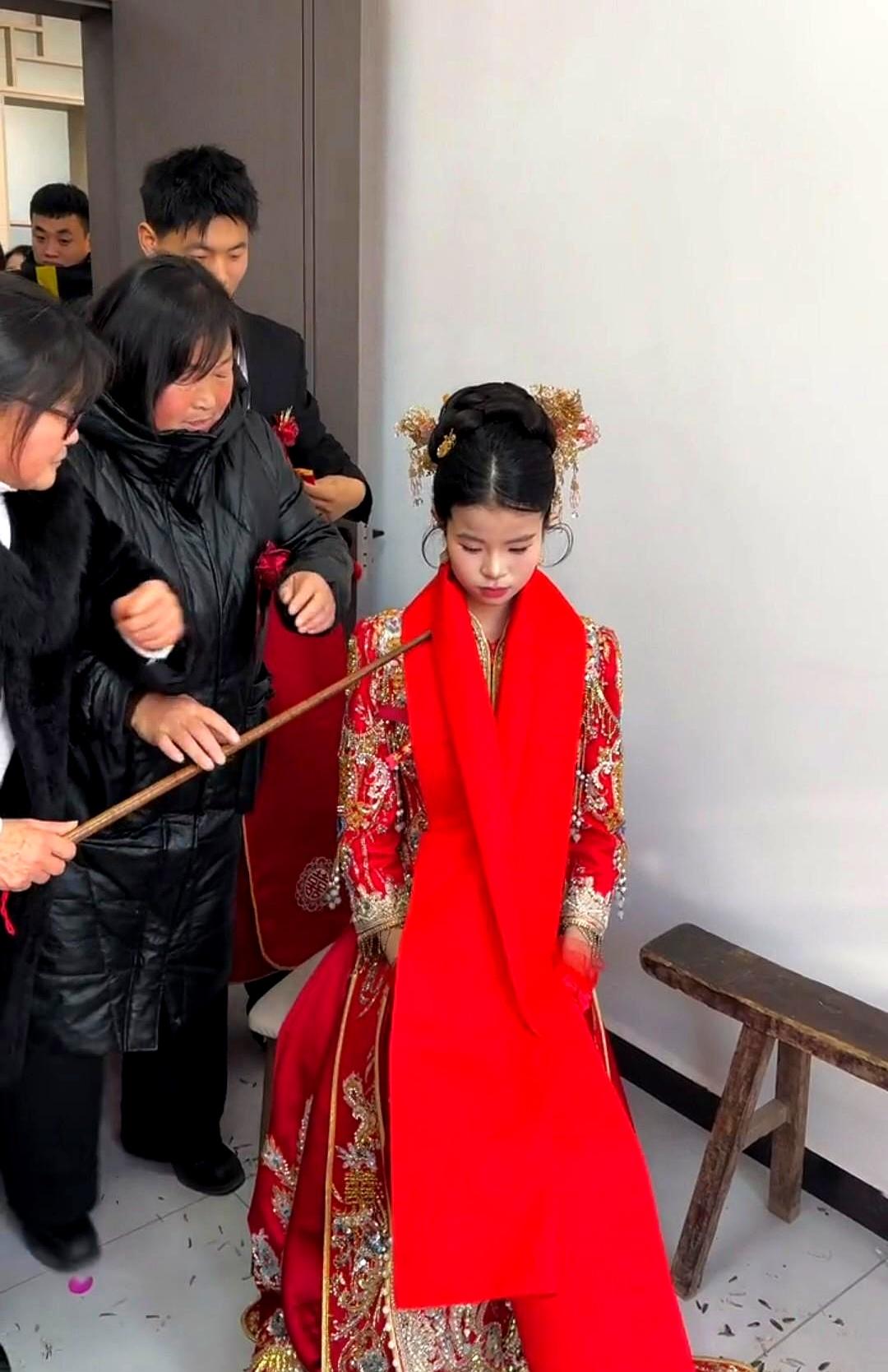 刷到个婚礼视频,这新娘子的模样,直接给看愣了。 满脸的稚气,顶多也就十多岁光景。 这哪里是嫁人,分明是还在上初中的年纪。 旁边还有人用块红布,围着小姑娘的脑袋转圈圈,足足转了四圈。 这是什么路数?是在“封口”,还是某种古老的“驯化”仪式? 想起老友家那个同龄的闺女,这会儿估计还在为没抢到演唱会门票跟爹妈撒娇呢。 这边的父母倒好,舍得让这么小的孩子去背负家庭的重担。 所谓的“习俗”,有时候真是一面照妖镜。 那块红布转的每一圈,看着都像是一道看不见的枷锁,硬生生把一个本该在操场奔跑的灵魂,困在了这方寸之间。 这喜气,沾得让人心里发沉。