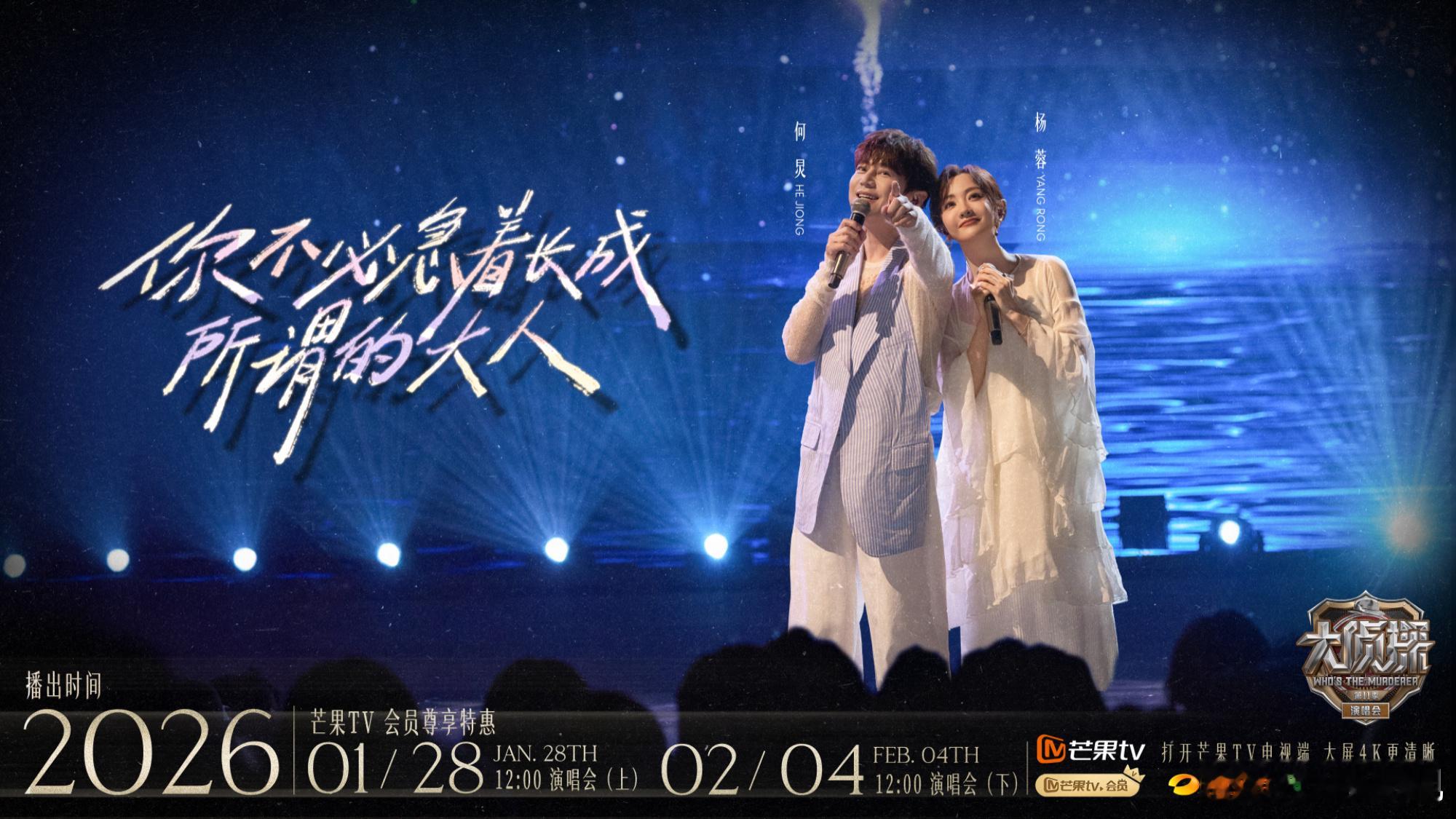 以声赴约,侦情相伴。欢娱影视演员参与录制的综艺节目大侦探新春演唱会 1月28日、2月4日中午12:00两周连播,今日解锁蓉侦探《无罪说》《你不必急着长成所谓的大人》舞台。