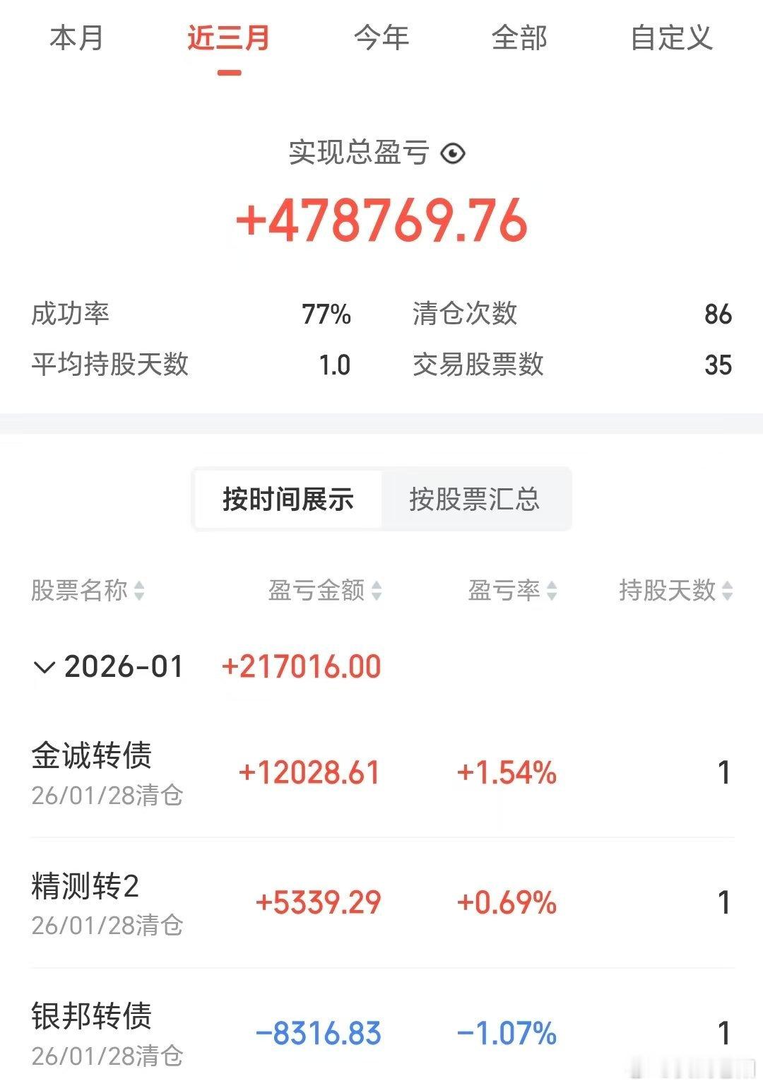 10点半之前完成任务,下班。今天精测转2没有卖好,金诚整体还行。银邦转债真的是有些没法说了!整体上还是在按照计划执行,并没有特别大的偏差。已经超越97%的人了,努力做到99%