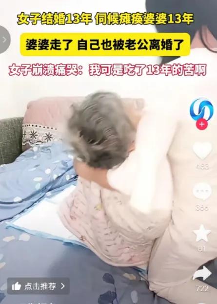 “这不就是典型的:卸磨杀驴!” 42岁女子,结婚13年,照顾瘫痪在床的婆婆13年,婆婆去了,他也被丈夫离婚,丈夫还喊话:照顾婆婆是你作为儿媳妇份内的事情,你没功劳。 这男的太不是个东西,明摆着骗一个免费保姆替他尽孝。 建议,女子上诉处理。 女子从29岁到42岁,13年时间全奉献给婆婆了,被欺骗得太惨了。 最好的年华,全在丈夫欺骗和处理瘫痪婆婆的屎尿中度过。 从这女子的经历可知:女孩不要恋爱脑,宁愿被骂物质。 还有,遇到家有瘫痪在床的老人,不能嫁。 不是有句老话说:久病床前无孝子。 不要拿你的善良去赌人性里的恶。 “人性经不起过度考验,善良需带有锋芒;婚姻从来不是奉献的单行道,所有‘理所应当’的背后,都该有一份清醒的守望。” 愿每一个你,都保护好自己。