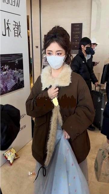 谭松韵这次在北京的亮相,属实是给所谓的“名媛风”上了一课。 瞧瞧这身行头,棕色大衣配上奢华的大毛领,换个人穿,那就是妥妥的“暴发户”既视感,搞不好还显老气。 我朋友圈里那几个整天晒下午茶的网红,穿貂带毛的,看着就透着一股子急功近利的俗气,生怕别人不知道这衣服多少钱。 可谭松韵偏偏在里面搭了条浅蓝色的纱裙。 这一冷一暖,一厚一薄,把那股子沉重的“贵妇感”硬是给中和成了“清冷仙气”。 身段苗条,穿得宽松反倒显出几分潇洒。 头发挽起来,戴着白口罩,就露双水灵的大眼睛,没有丝毫的刻意讨好。 这才是段位。 真正的显贵,不是把人民币穿在身上,而是那种“随便穿穿都好看”的底气。 人在衣中晃,越晃越有样。