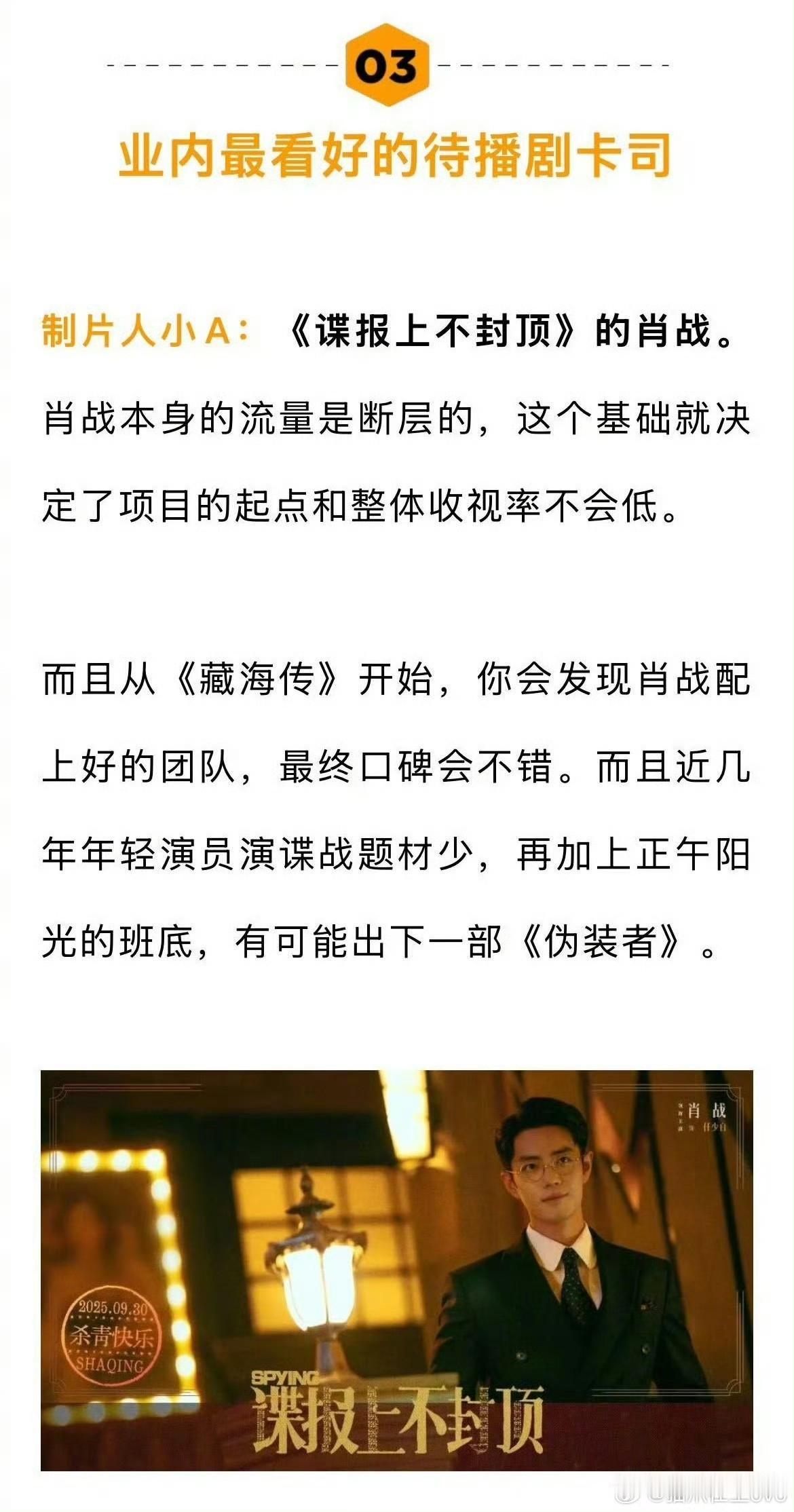 业内评价才是对肖战最真实的评价,看看肖战的影视班底和商务舞台规格待遇就一清二楚了