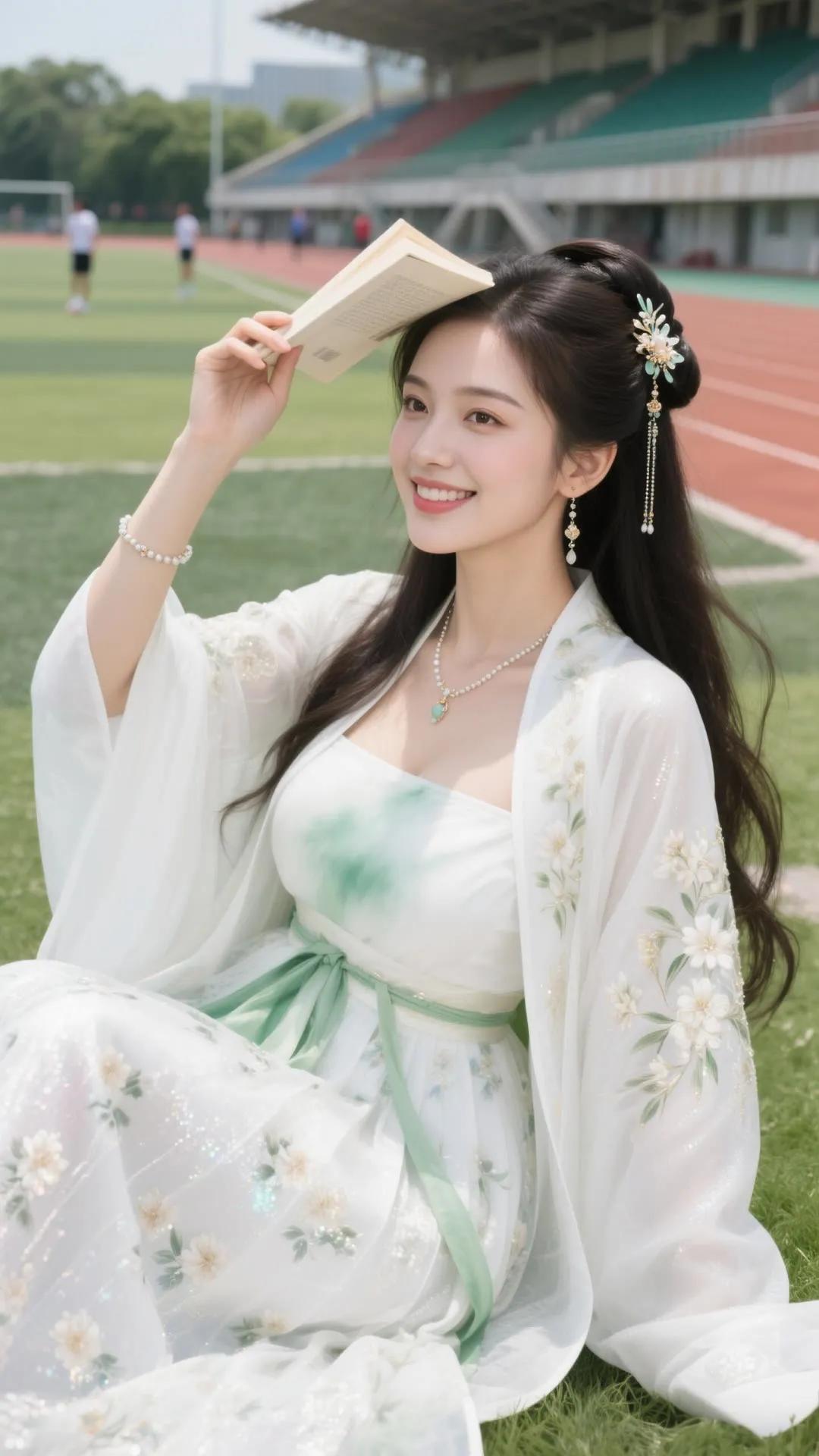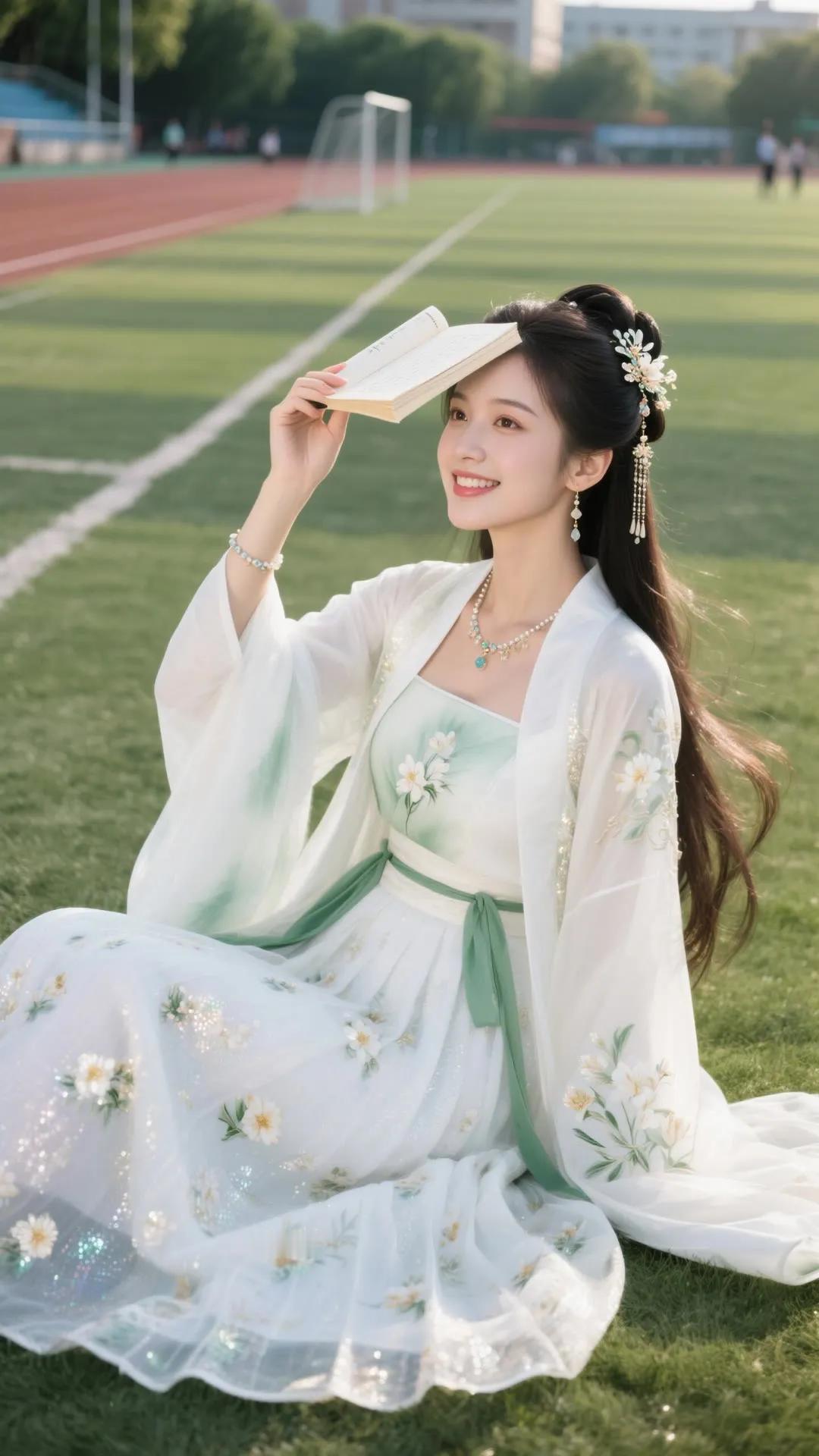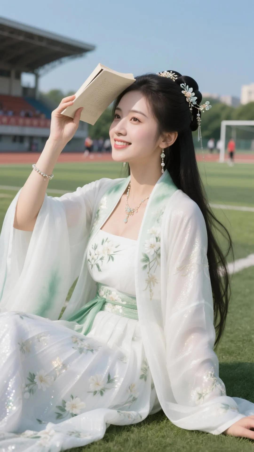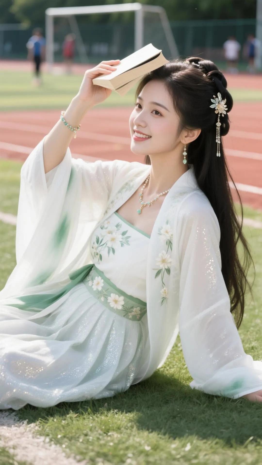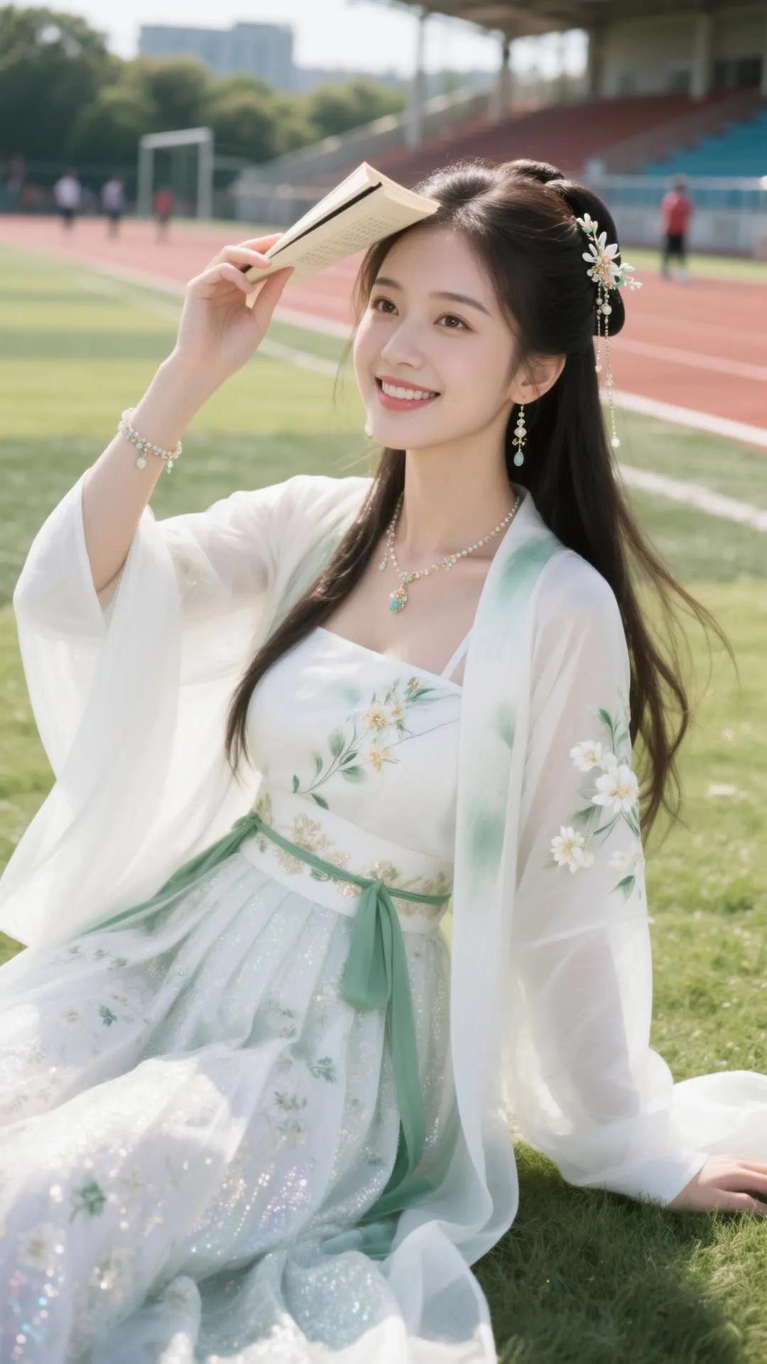 夏日校园,古风少女,书香满怀,笑靥如花。