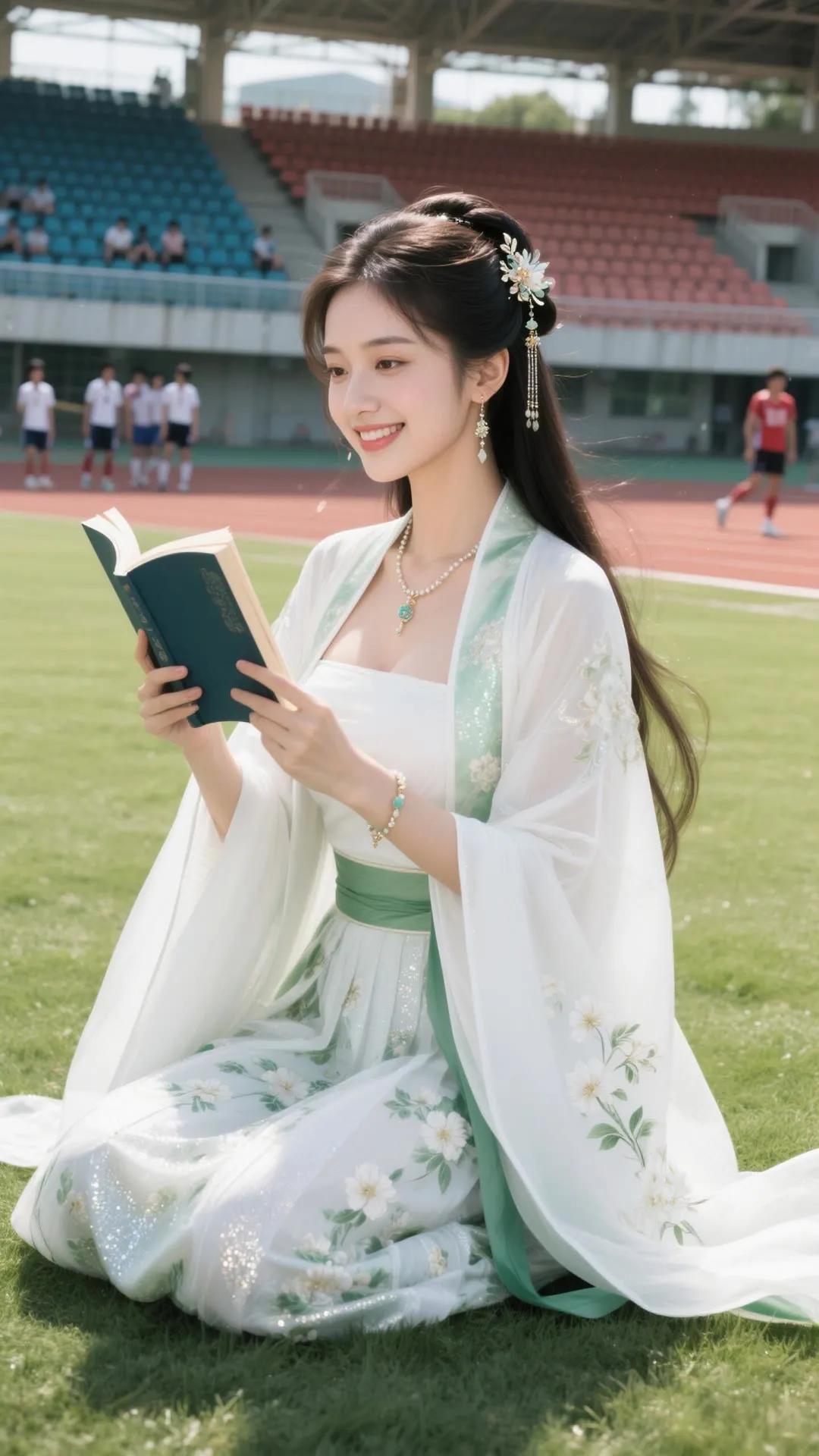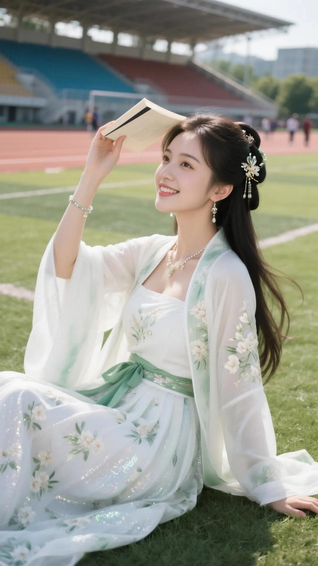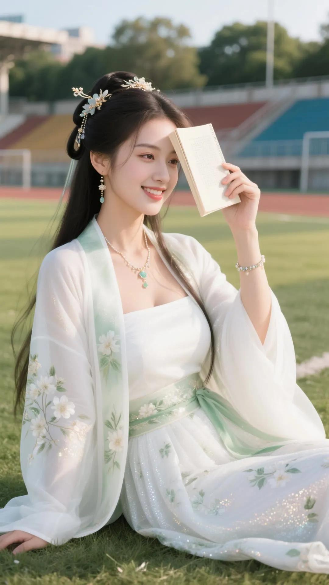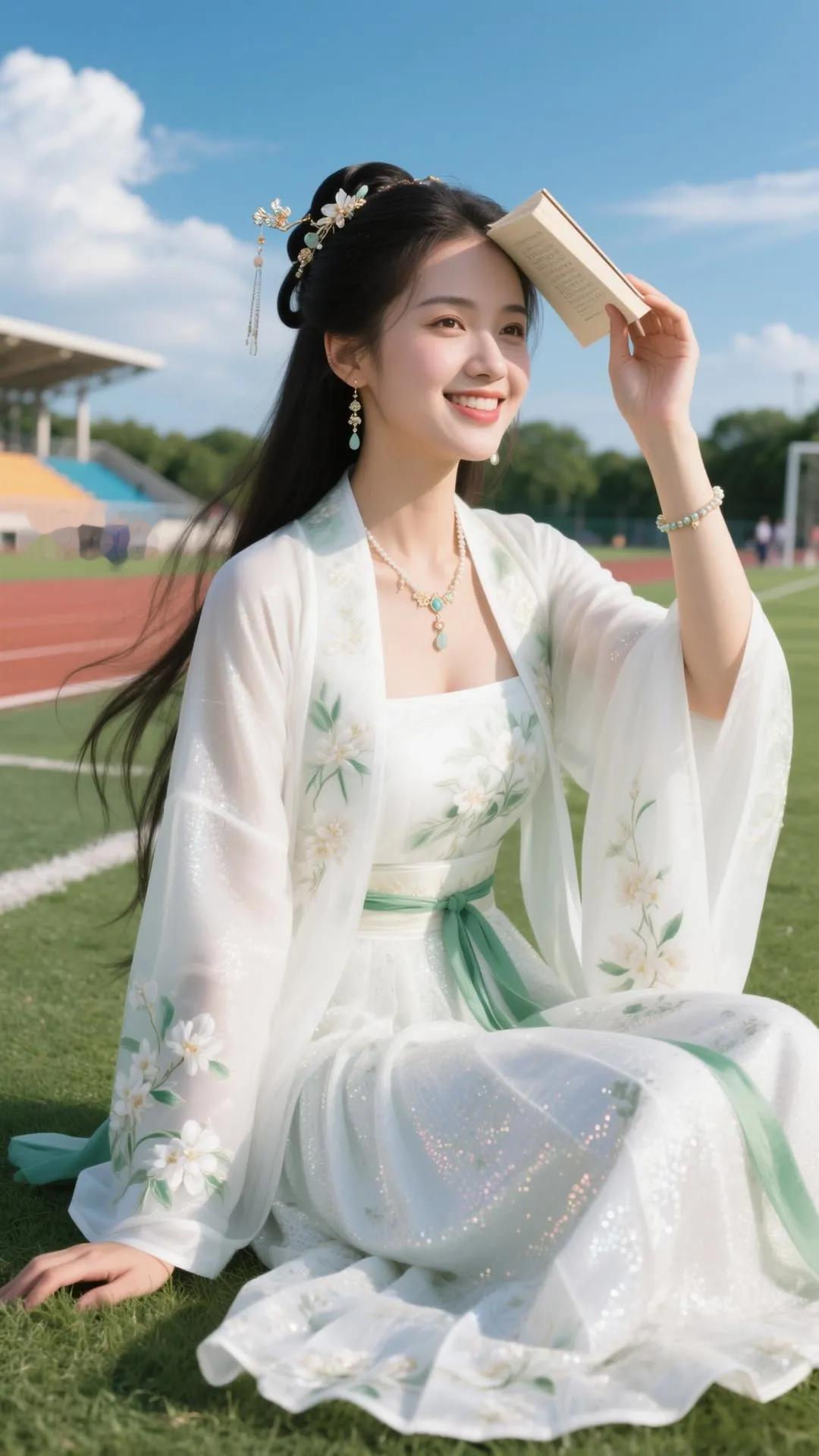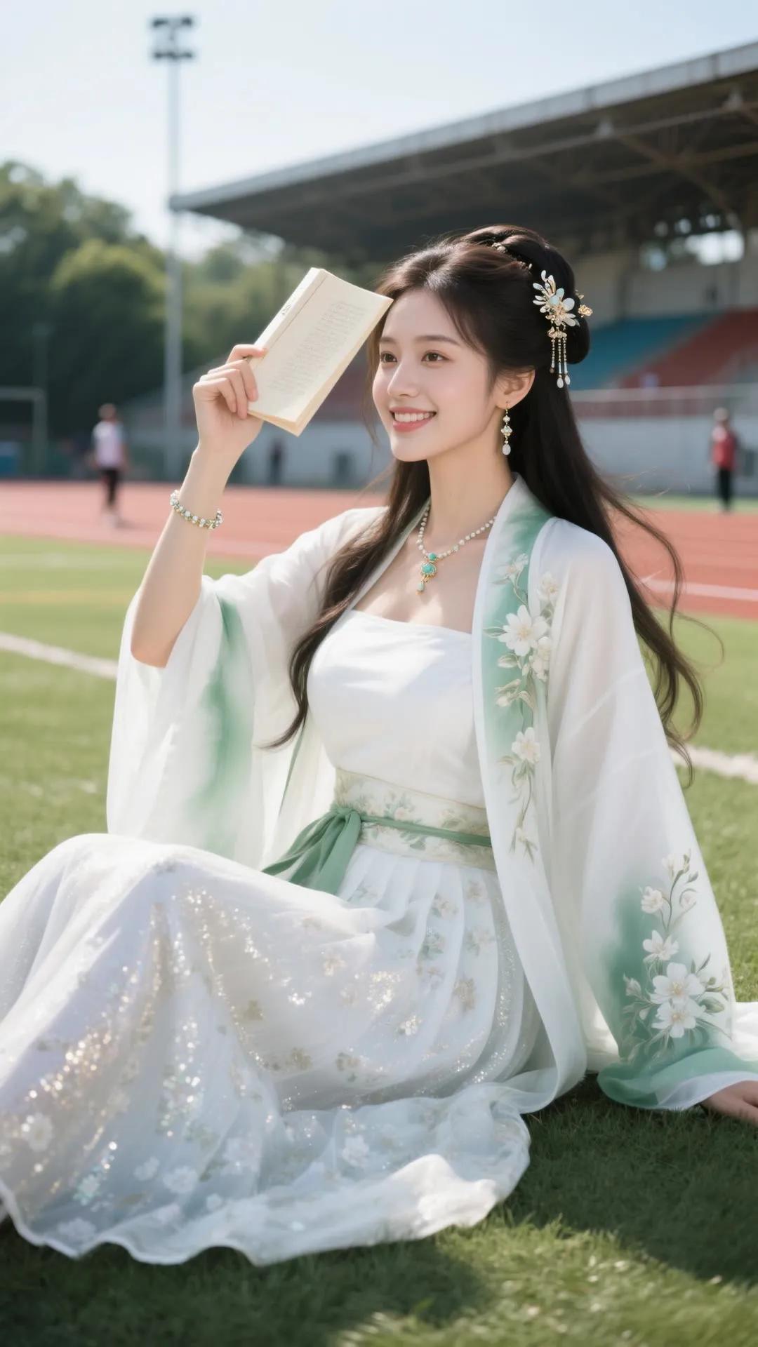 夏日校园,古风少女,书香满怀,笑靥如花。